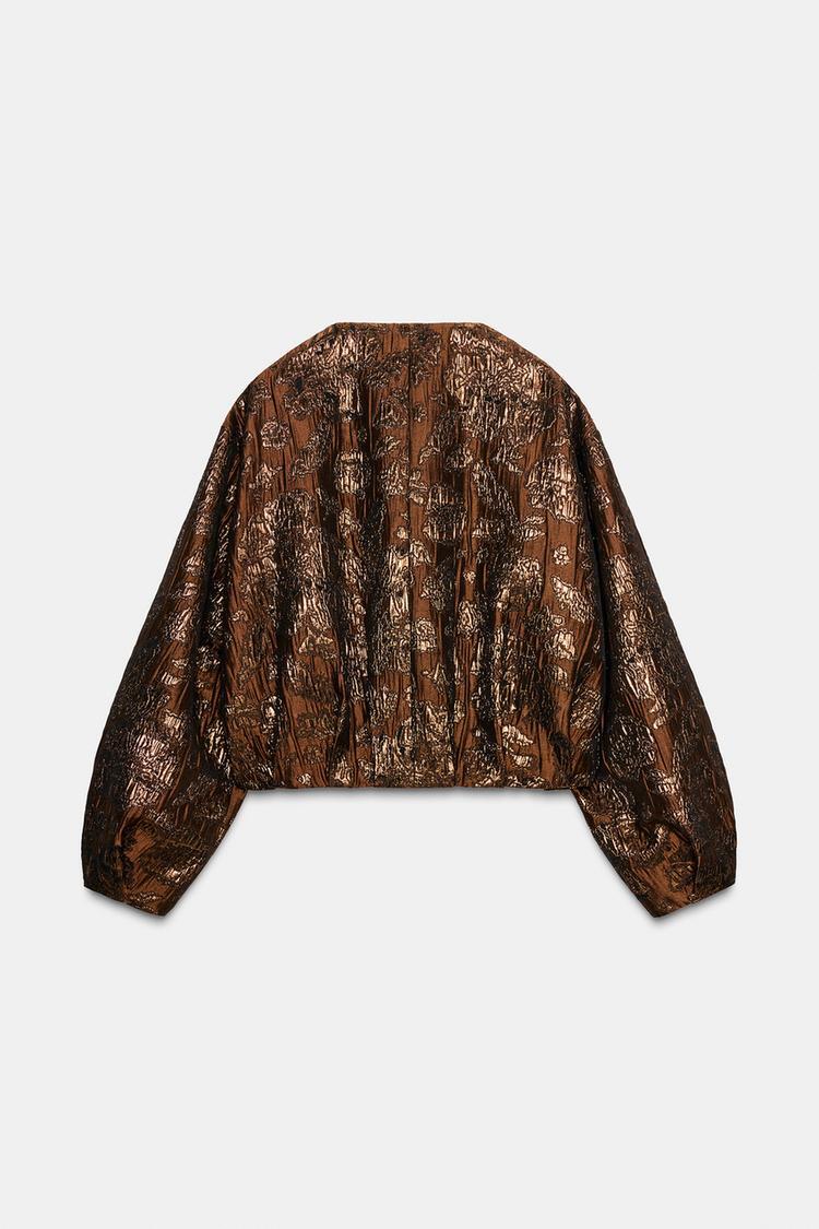 ZARA БОМБЕР ИЗ ЖАККАРДА С БЛЕСКОМ, ОХРА