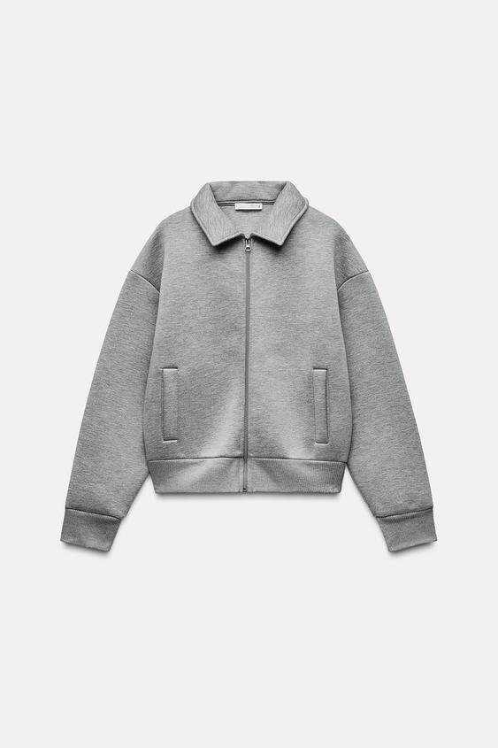 ZARA БОМБЕР С ЭФФЕКТОМ БРЫЗГ, СЕРЫЙ С МЕЛАНЖЕВЫМ ЭФФЕКТОМ