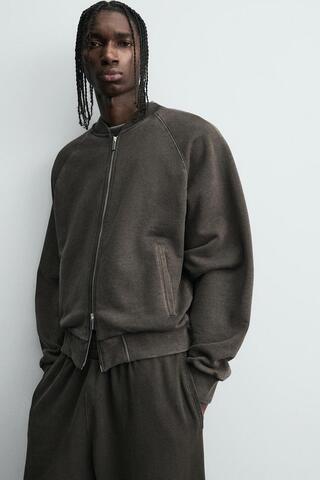 ZARA БОМБЕР С ЭФФЕКТОМ ПОТЕРТОСТИ, КОРИЧНЕВЫЙ