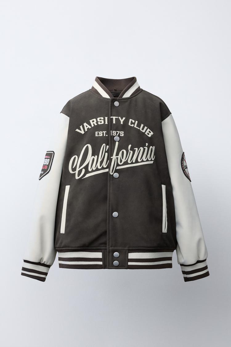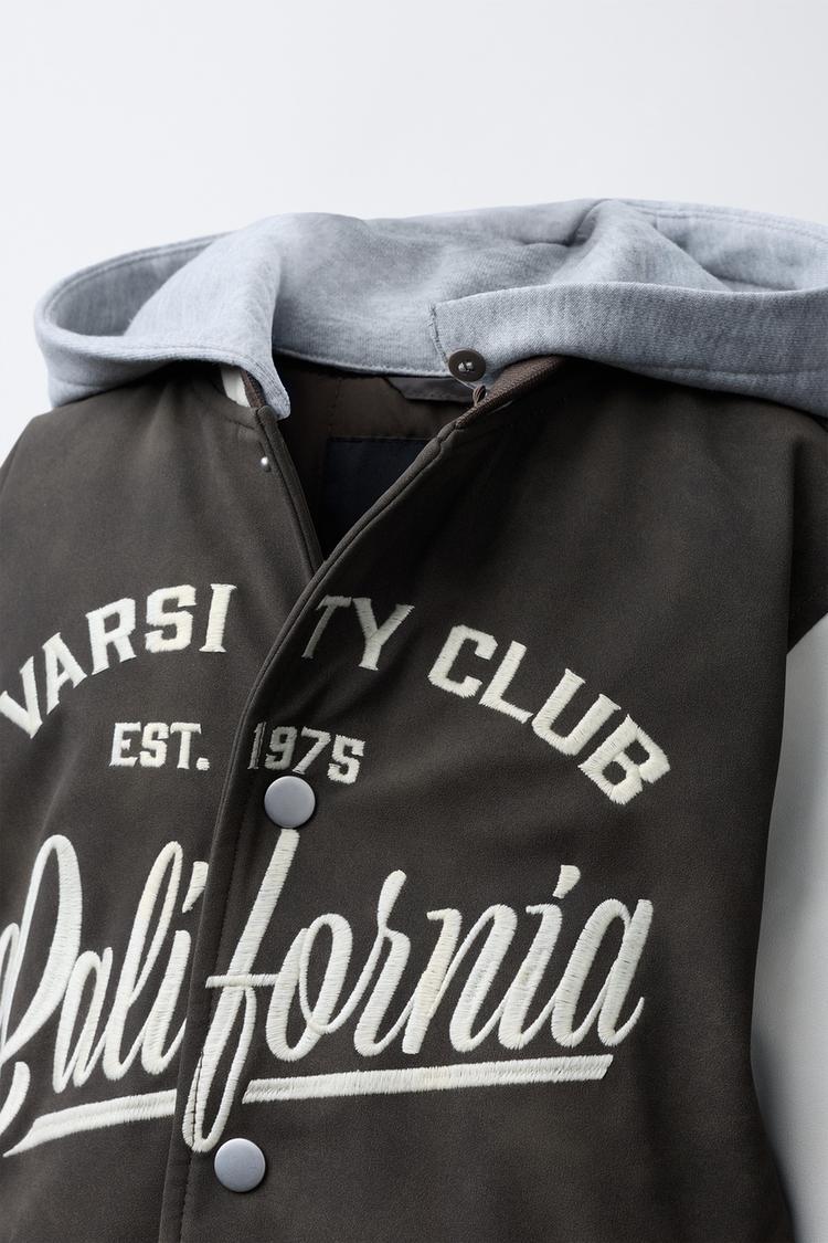 ZARA БОМБЕР С КАПЮШОНОМ И РУКАВАМИ ИЗ ИСКУССТВЕННОЙ КОЖИ, КОРИЧНЕВЫЙ