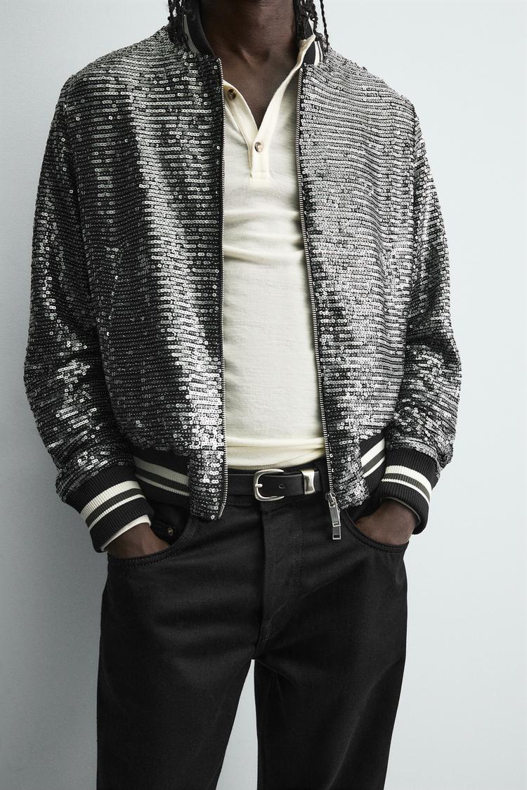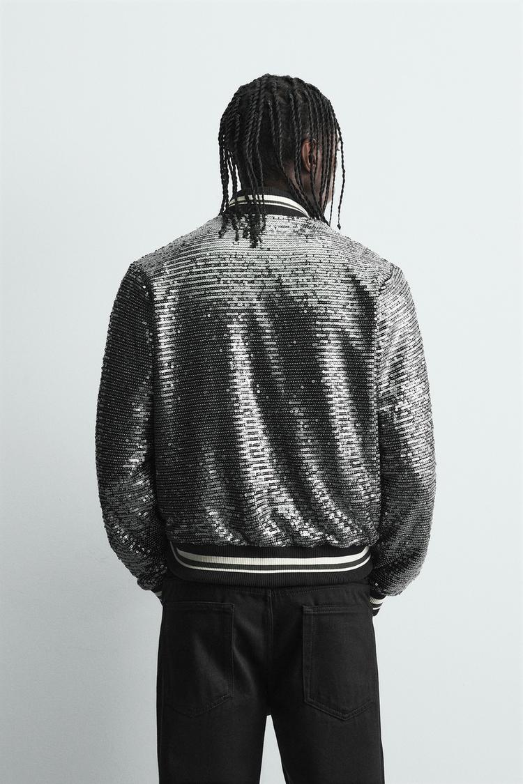 ZARA БОМБЕР С ПАЙЕТКАМИ, ЧЕРНЫЙ/СЕРЕБРЯНЫЙ