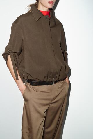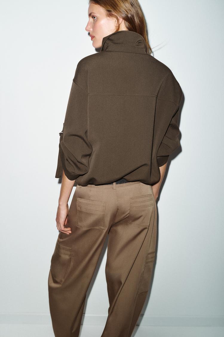 ZARA БОМБЕР С ПОДВЕРНУТЫМИ РУКАВАМИ, ТАБАЧНЫЙ