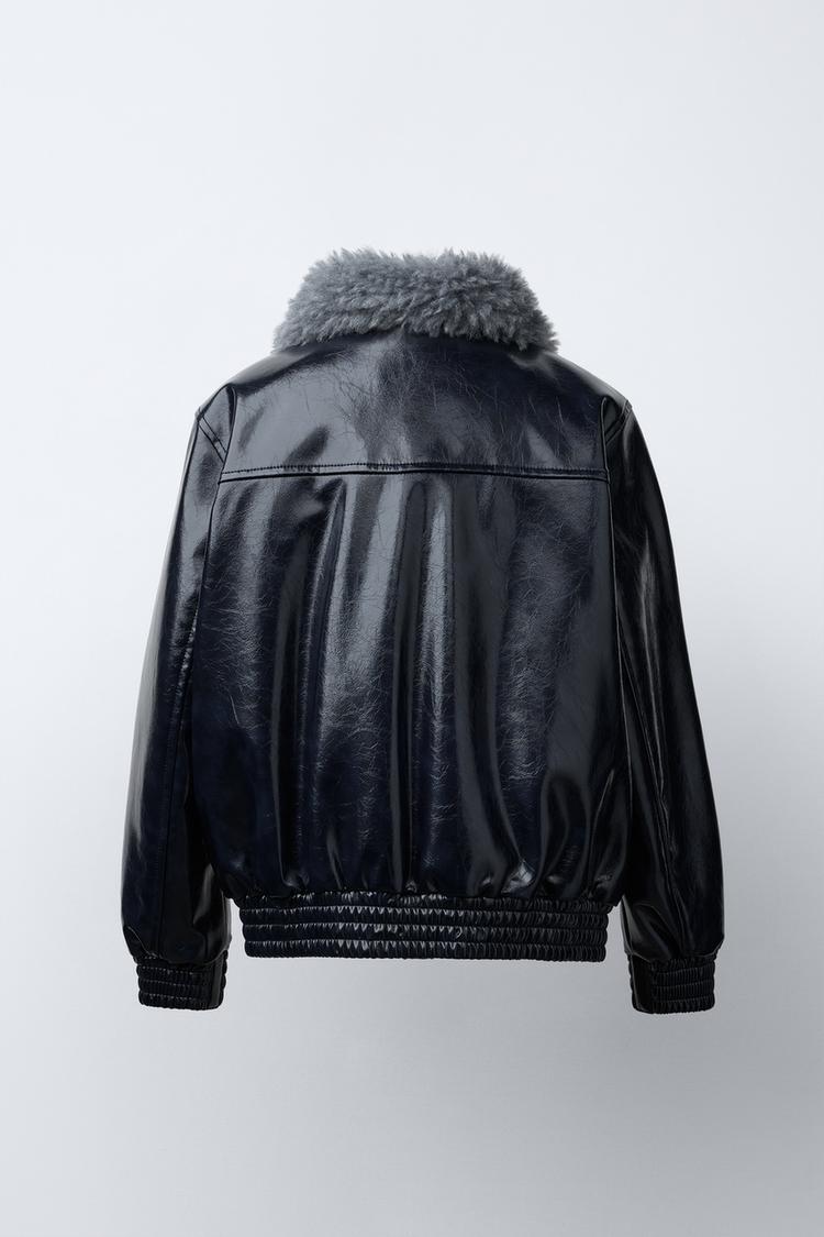 ZARA БОМБЕР С ВОРОТНИКОМ С ИСКУССТВЕННЫМ МЕХОМ, МОРСКОЙ СИНИЙ