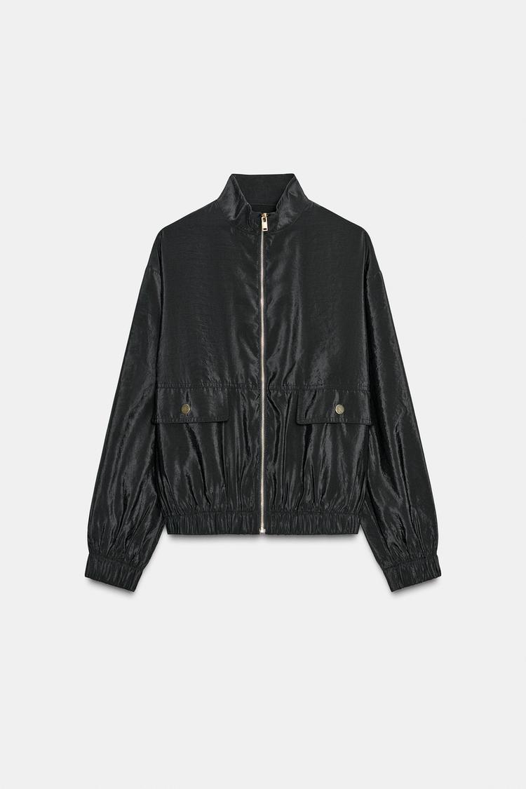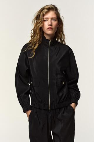 ZARA БОМБЕР С ВОРОТНИКОМ-СТОЙКОЙ, ЧЕРНЫЙ
