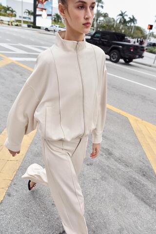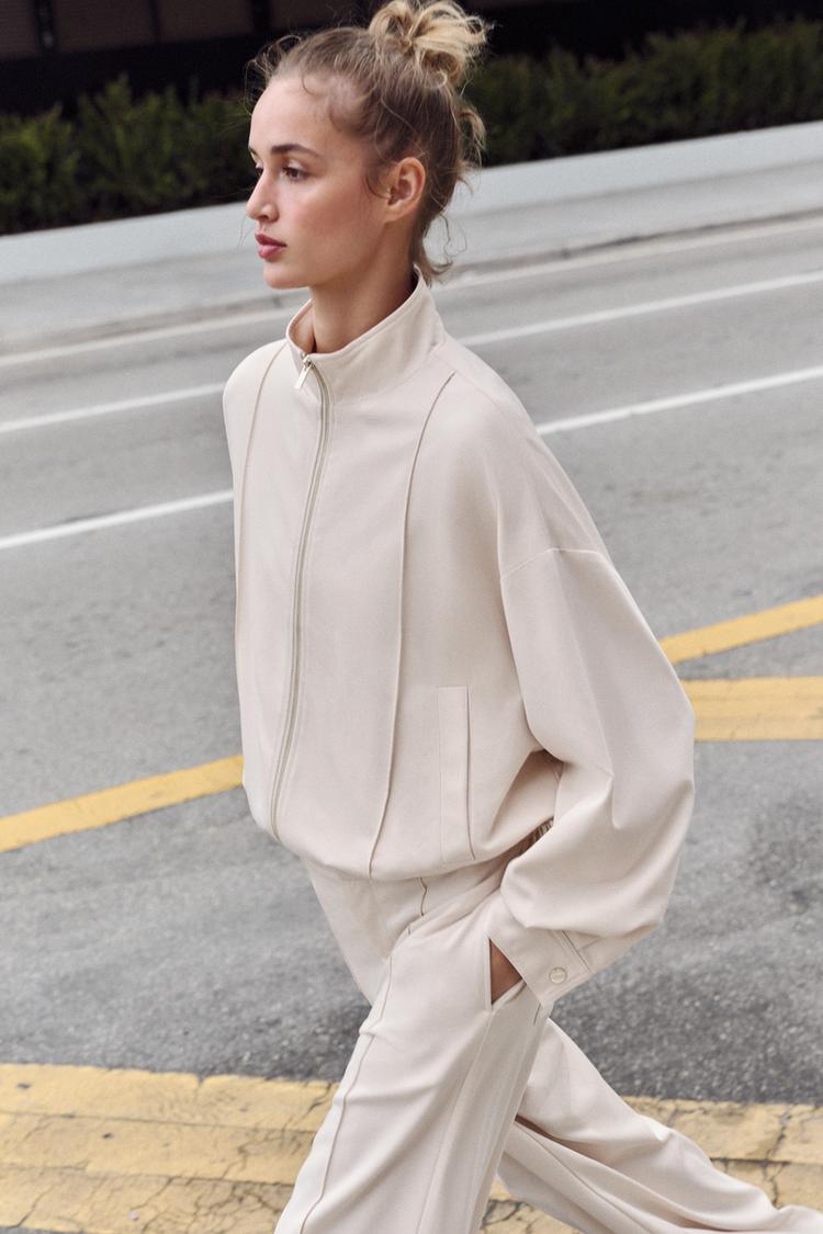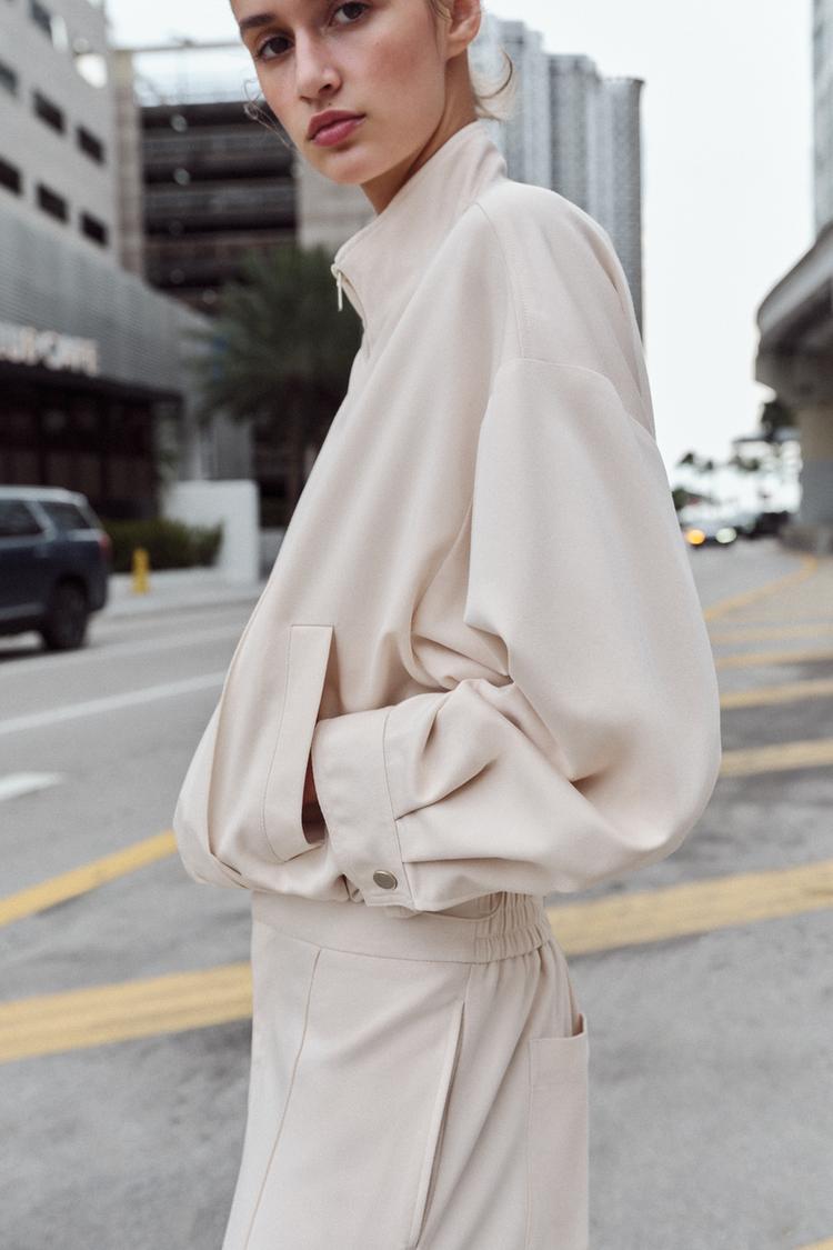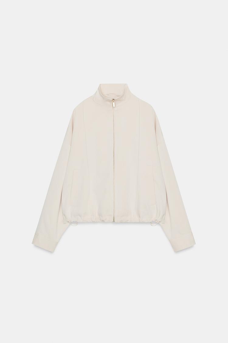 ZARA БОМБЕР С ВОРОТНИКОМ-СТОЙКОЙ, ЭКРЮ