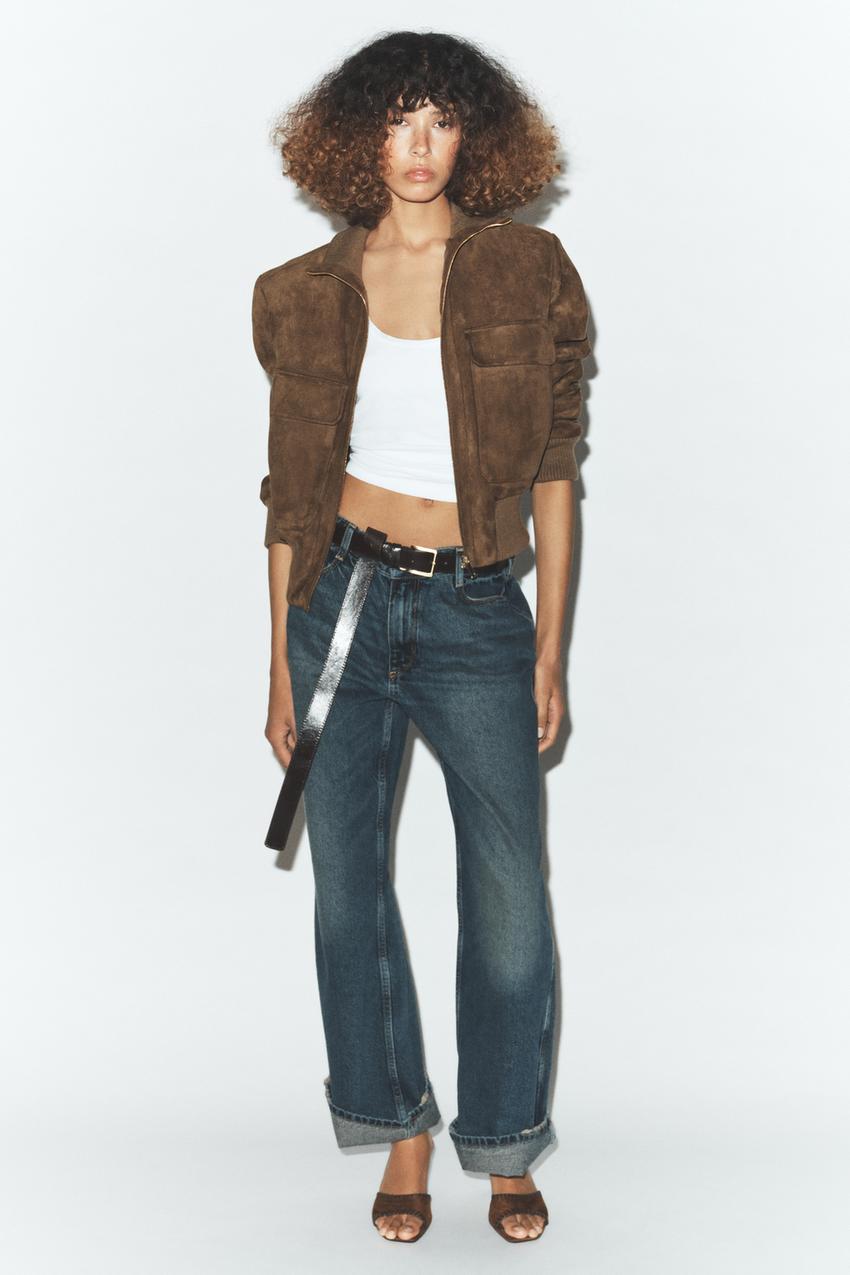 ZARA БОМБЕР С ВОРОТНИКОМ-СТОЙКОЙ И РУБЧИКОМ, СВЕТЛО-БЕЖЕВЫЙ