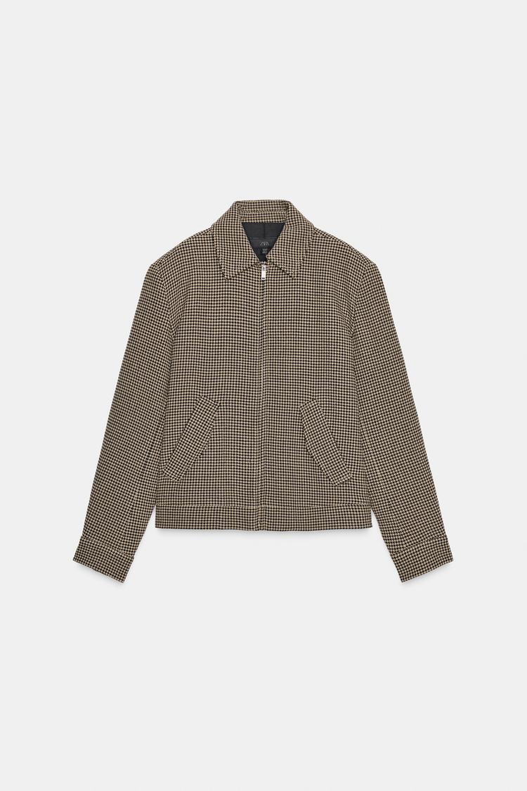 ZARA БОМБЕР В ГУСИНУЮ ЛАПКУ С ПОДПЛЕЧНИКАМИ, ЧЕРНЫЙ/КОРИЧНЕВЫЙ