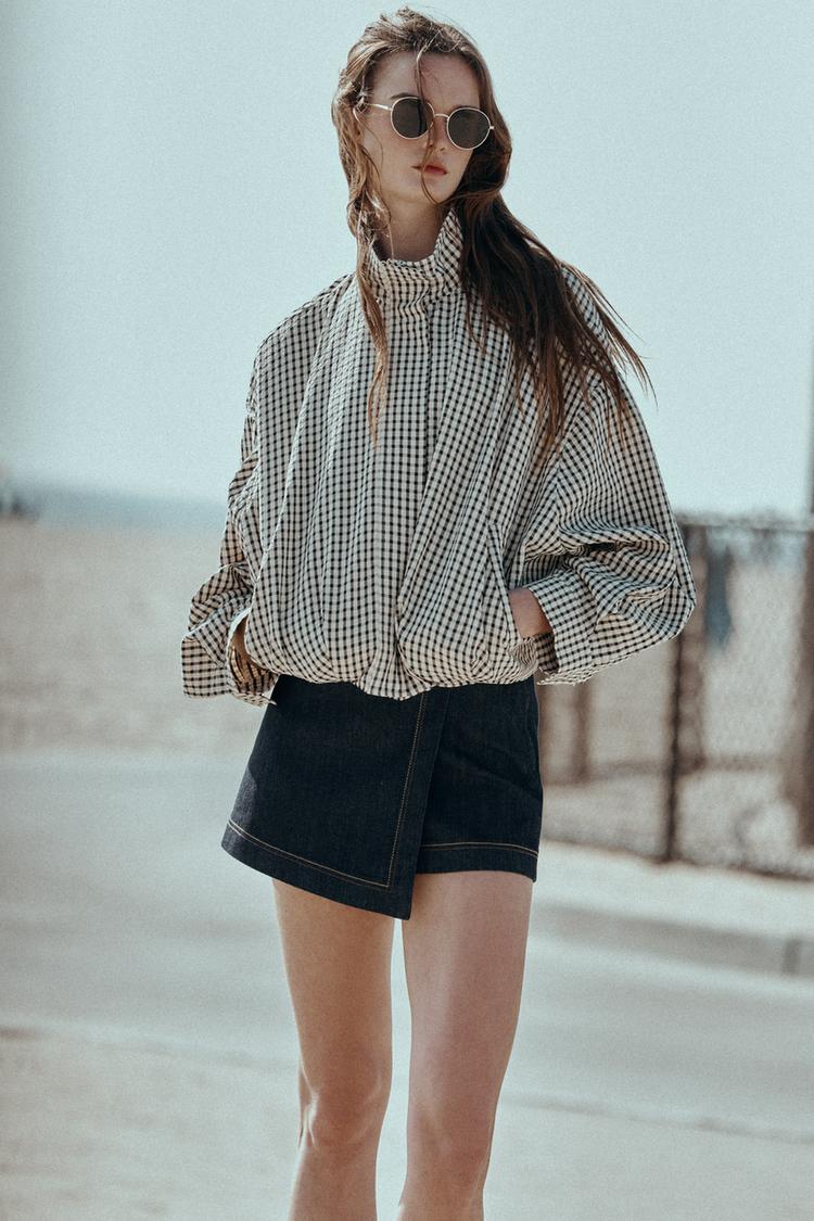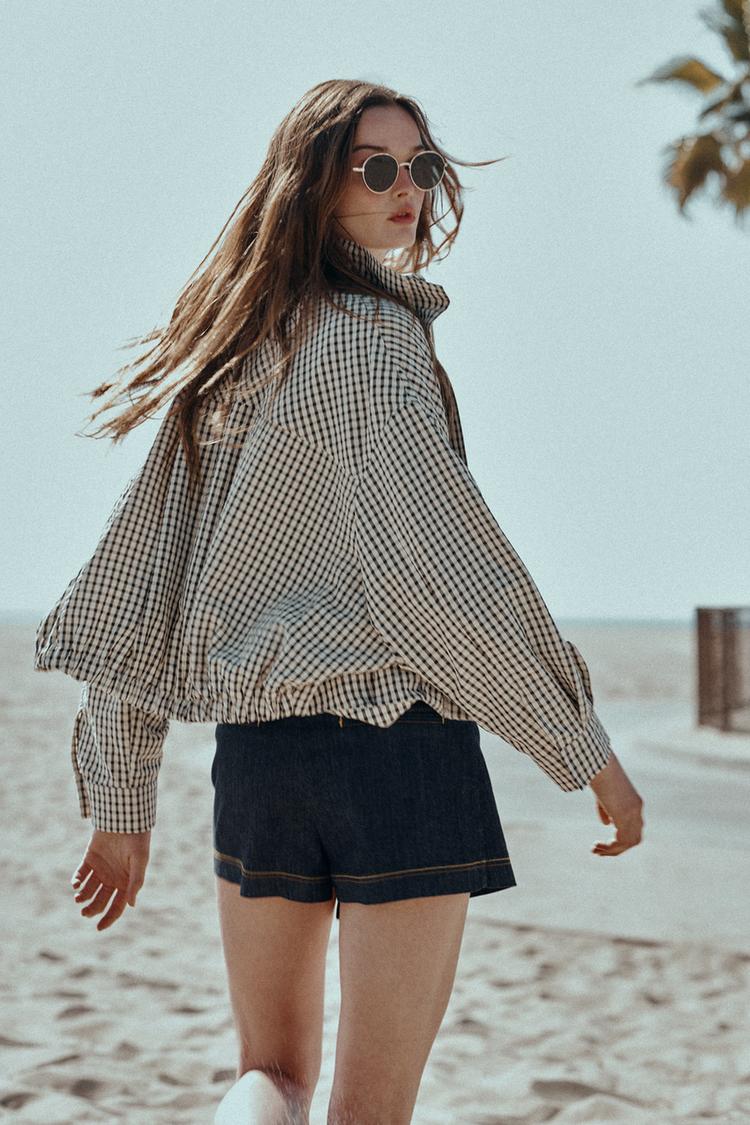 ZARA БОМБЕР В КЛЕТКУ, ЧЕРНЫЙ/ЭКРЮ