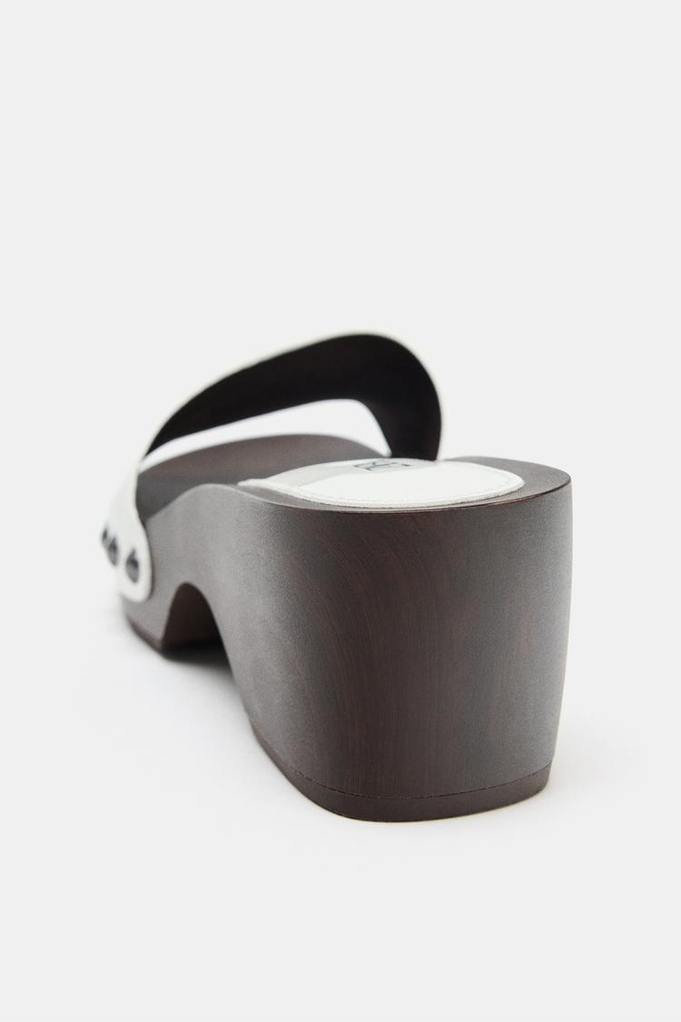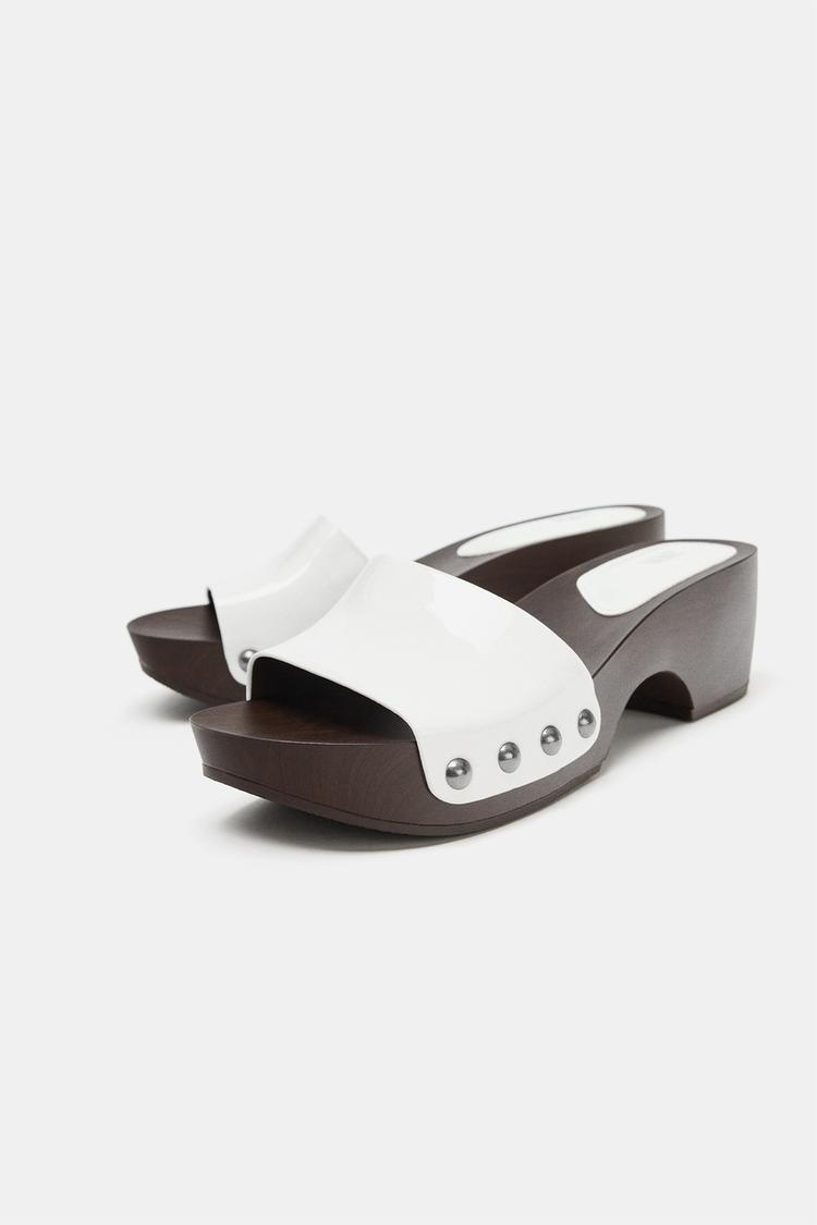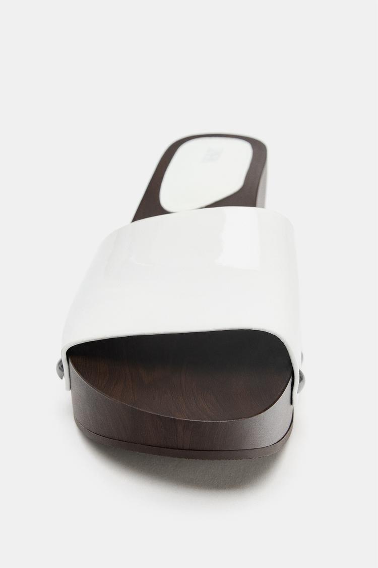 ZARA БОСОНОЖКИ НА ТАНКЕТКЕ ИЗ ЛАКИРОВАННОЙ КОЖИ, БЕЛЫЙ