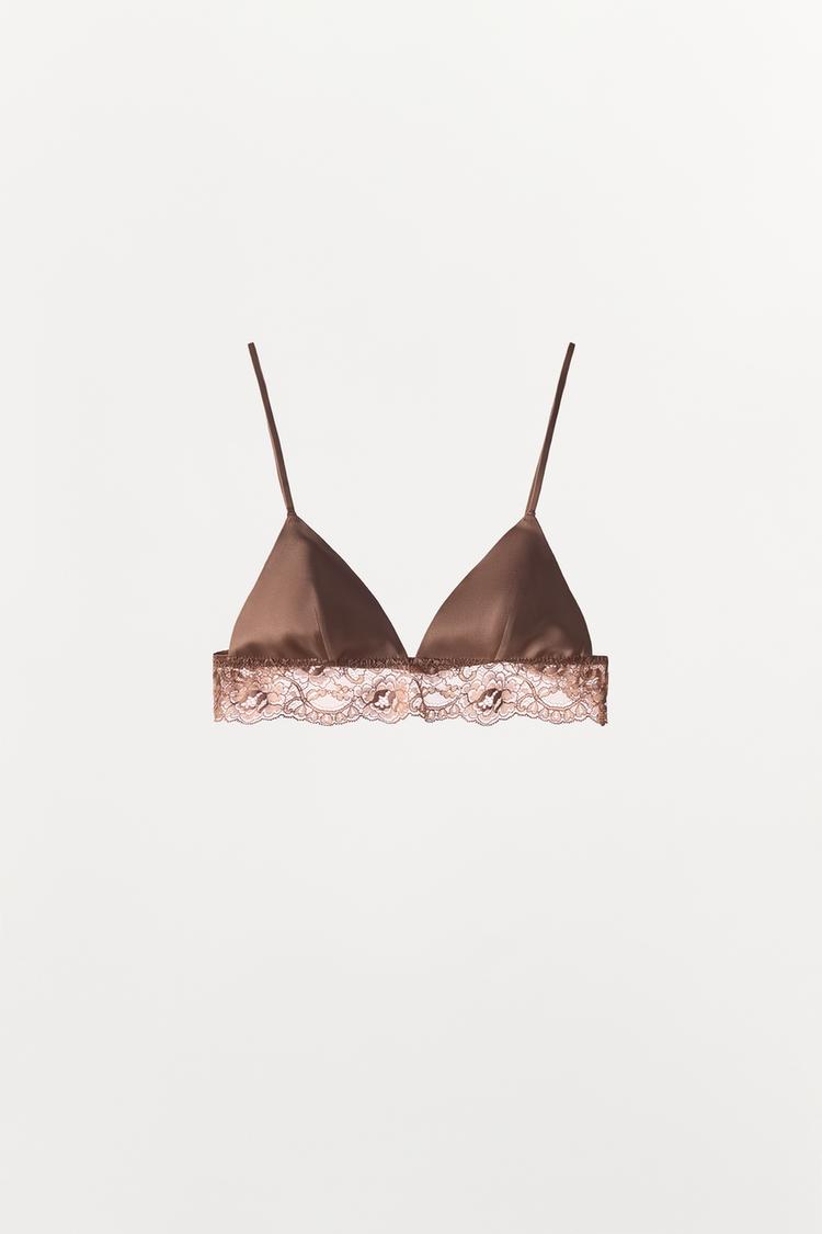 ZARA БРАЛЕТТ С ПОЛИАМИДНЫМ КРУЖЕВОМ, БЕЖЕВЫЙ