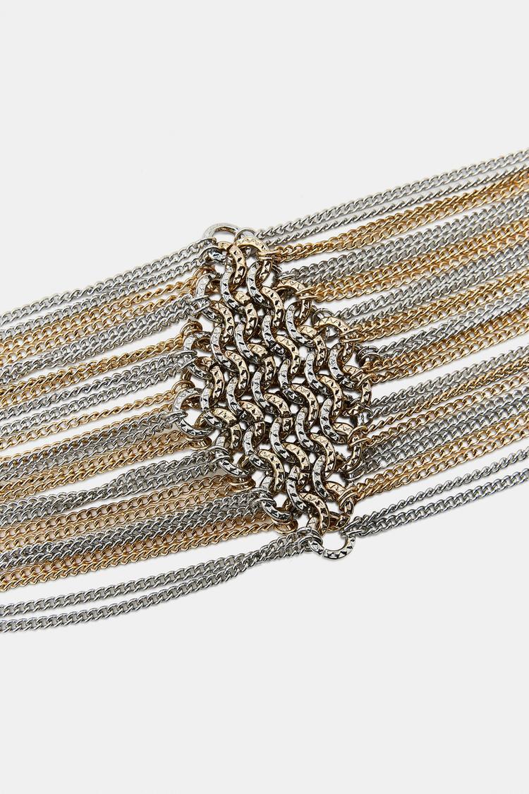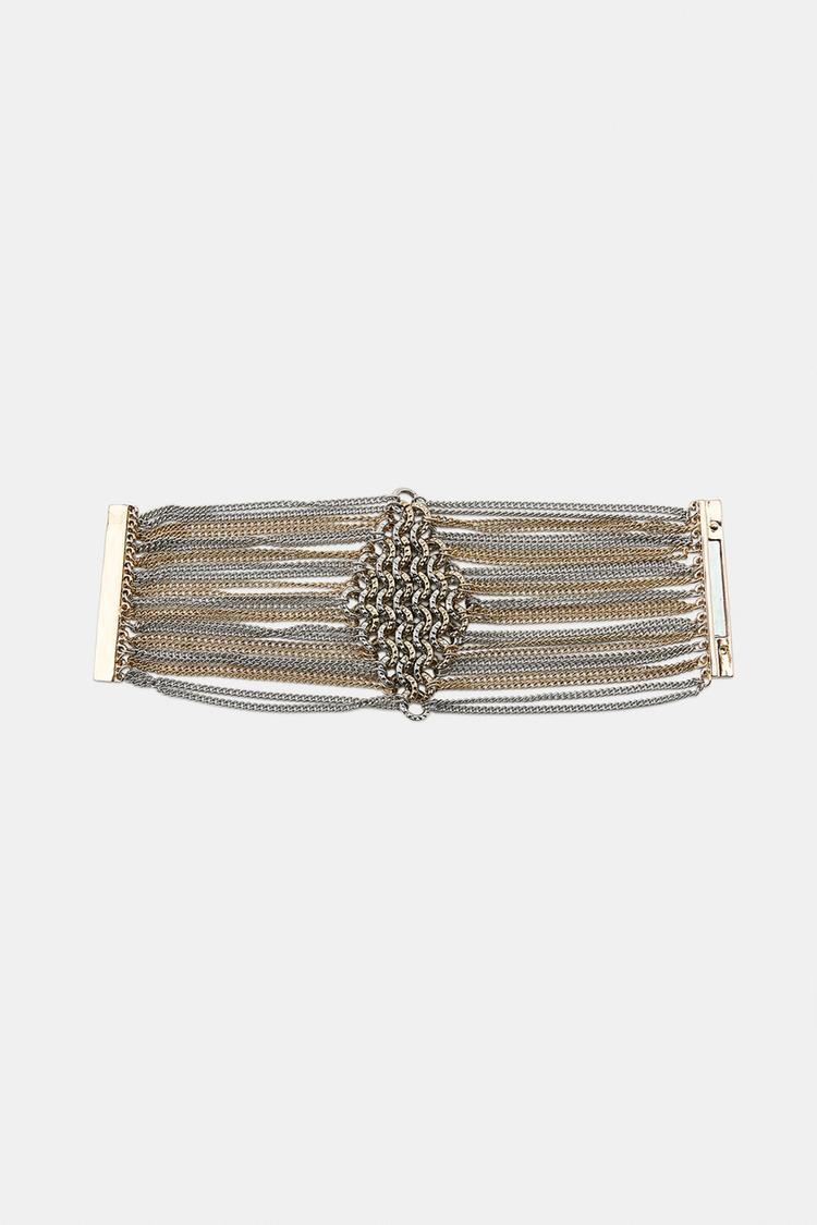 ZARA БРАСЛЕТ С ЦЕПОЧКАМИ И КОЛЬЦАМИ, ЗОЛОТОЙ/СЕРЕБРЯНЫЙ