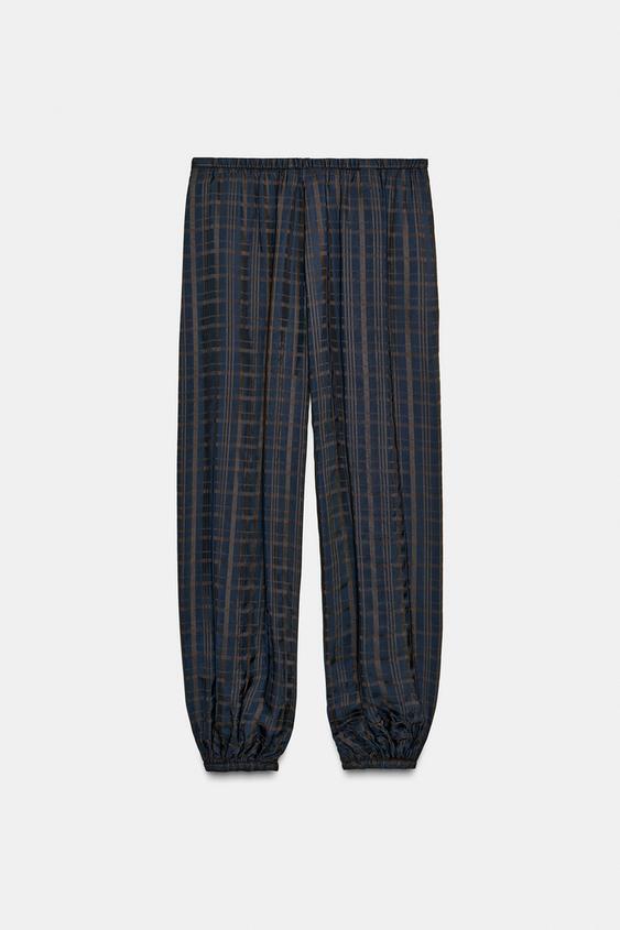 ZARA БРЮКИ-АЛАДДИНЫ В КЛЕТКУ — ZW COLLECTION, КОРИЧНЕВЫЙ/СИНИЙ