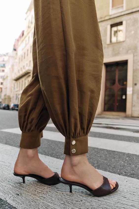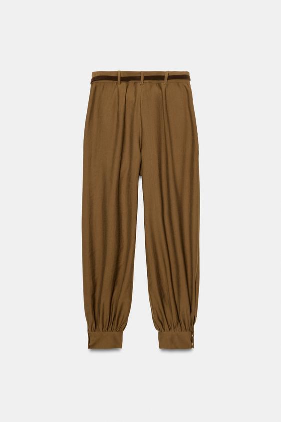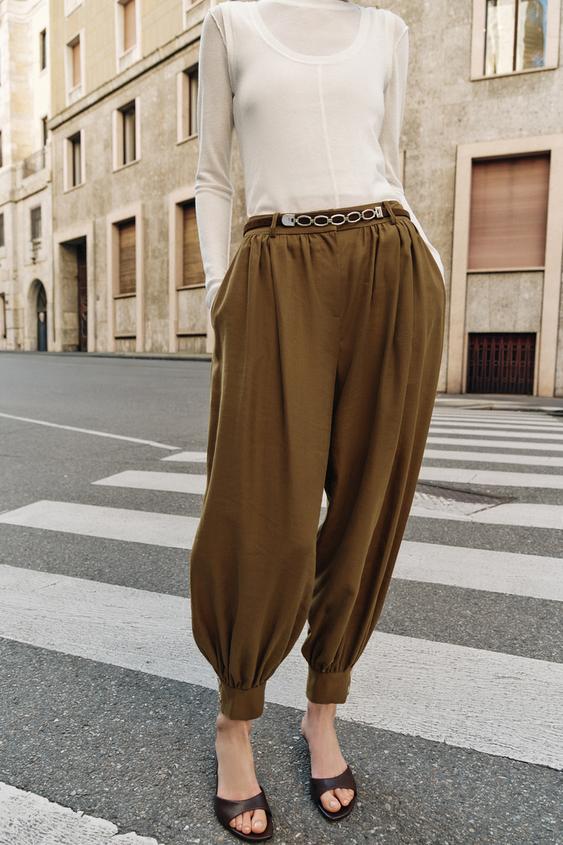 ZARA БРЮКИ-БАГГИ С ЦЕПОЧКОЙ, ОЛИВКОВЫЙ