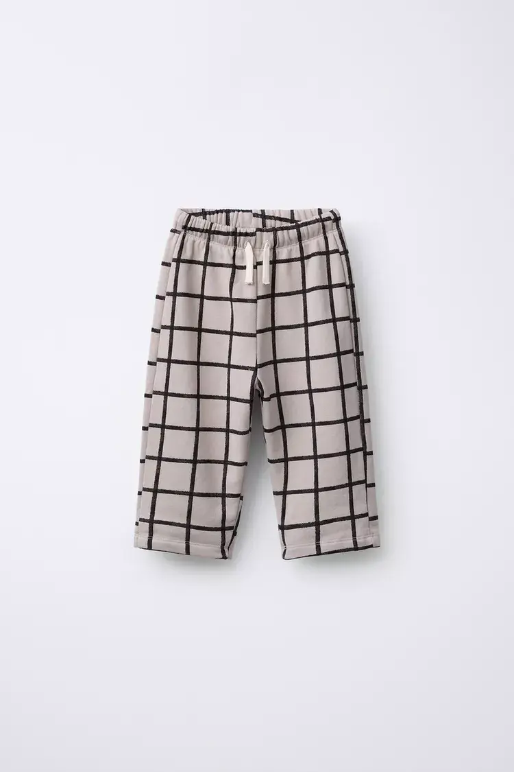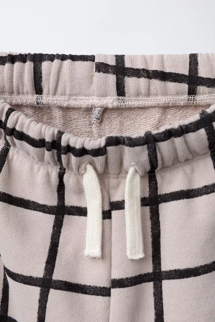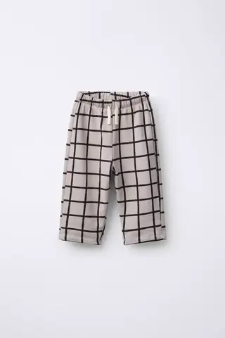 ZARA БРЮКИ BAGGY ИЗ ФУТЕРА В КЛЕТКУ, СВЕТЛО-ПЕСОЧНЫЙ