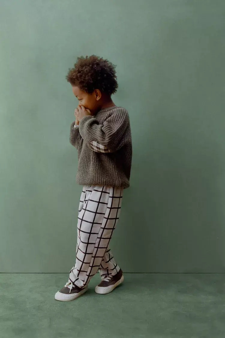 Брюки свободного кроя с эластичным поясом и регулируемыми шнурками. Ткань в клетку. 100% хлопок.