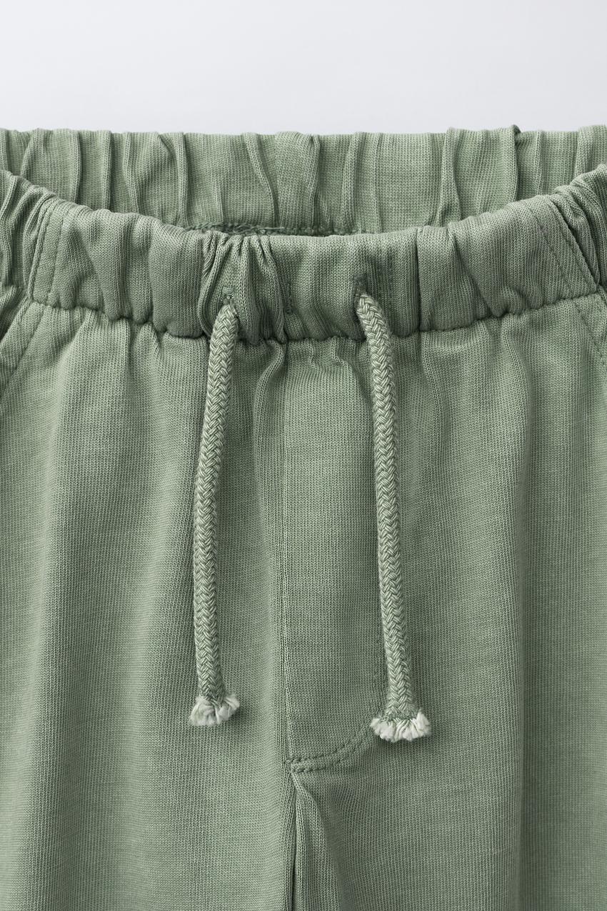 ZARA БРЮКИ BAGGY ИЗ ПЛОТНОГО ТРИКОТАЖА, СВЕТЛО-ЗЕЛЕНЫЙ