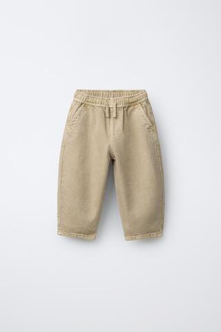 ZARA БРЮКИ BAGGY ИЗ САРЖИ, РЫЖЕВАТО-КОРИЧНЕВЫЙ