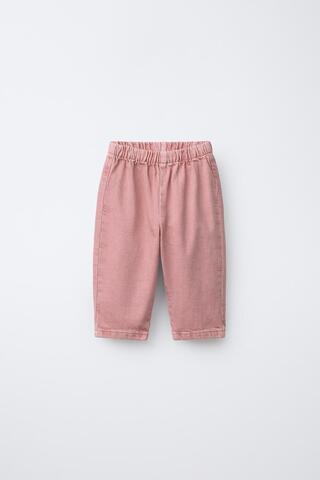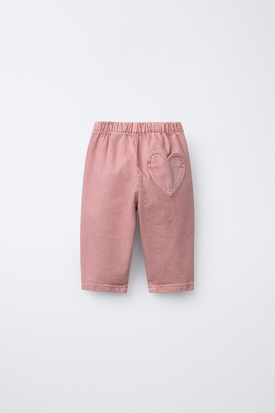 ZARA БРЮКИ BAGGY ИЗ САРЖИ С КАРМАНОМ В ВИДЕ СЕРДЦА, РОЗОВЫЙ