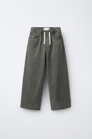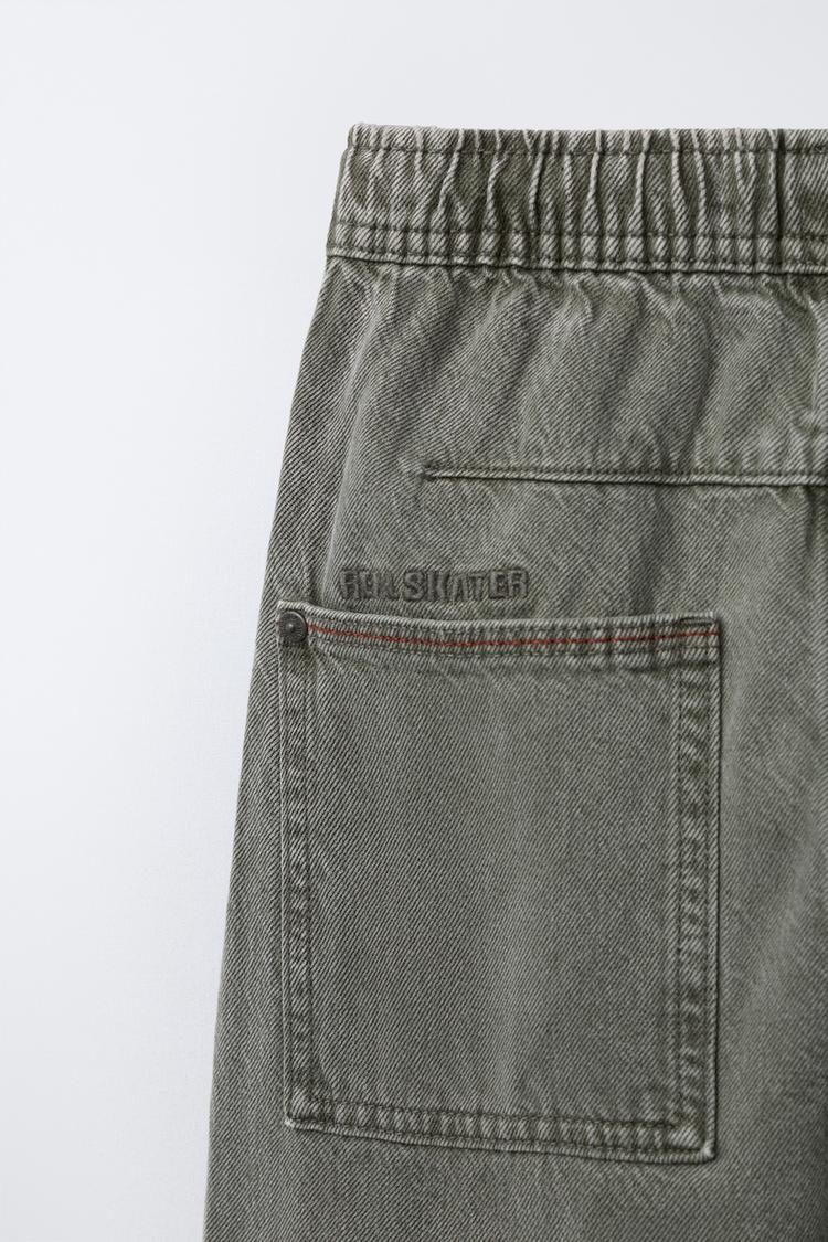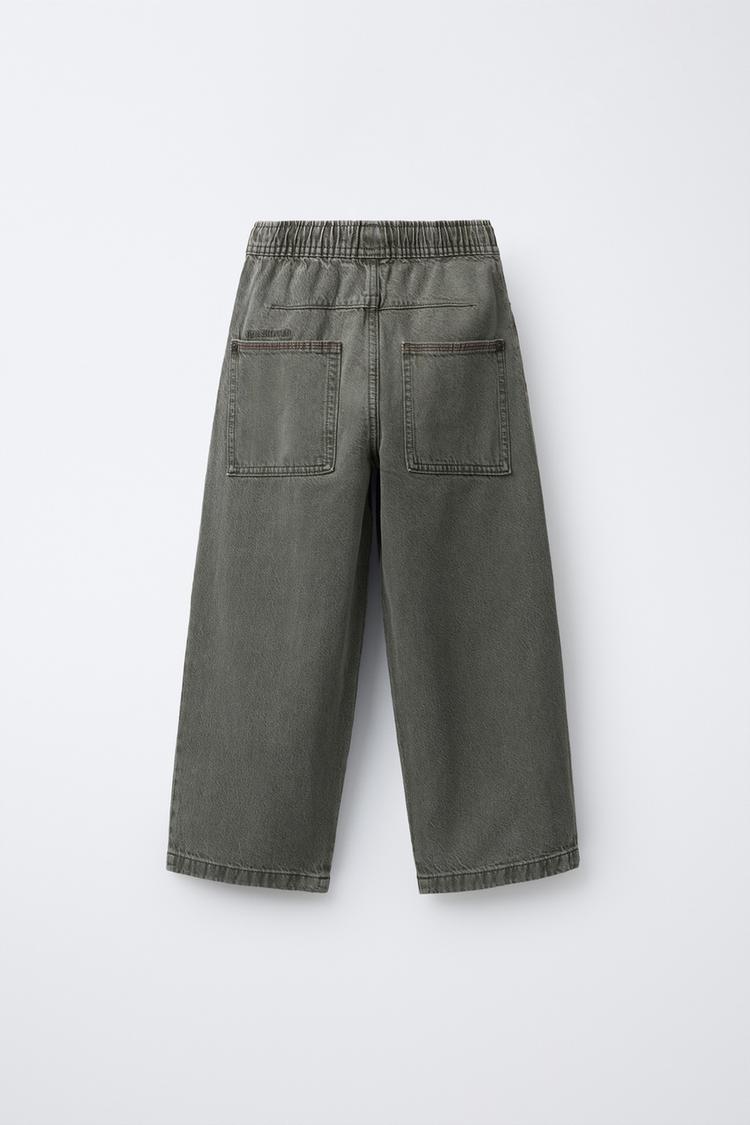 ZARA БРЮКИ BAGGY ИЗ САРЖИ, ЗЕЛЕНЫЙ