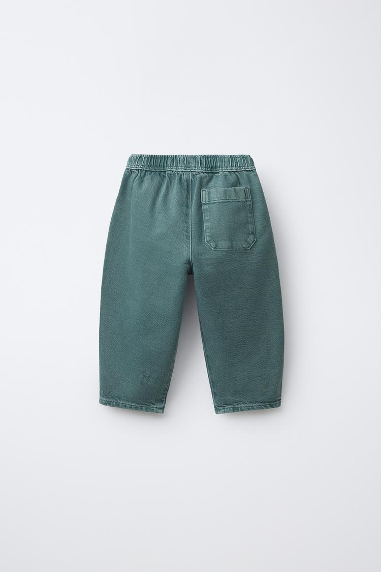 ZARA БРЮКИ BAGGY ИЗ САРЖИ, ЗЕЛЕНЫЙ