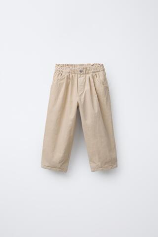 ZARA БРЮКИ BAGGY ИЗ ТОНКОГО ВЕЛЬВЕТА С ПОДКЛАДКОЙ, ЭКРЮ