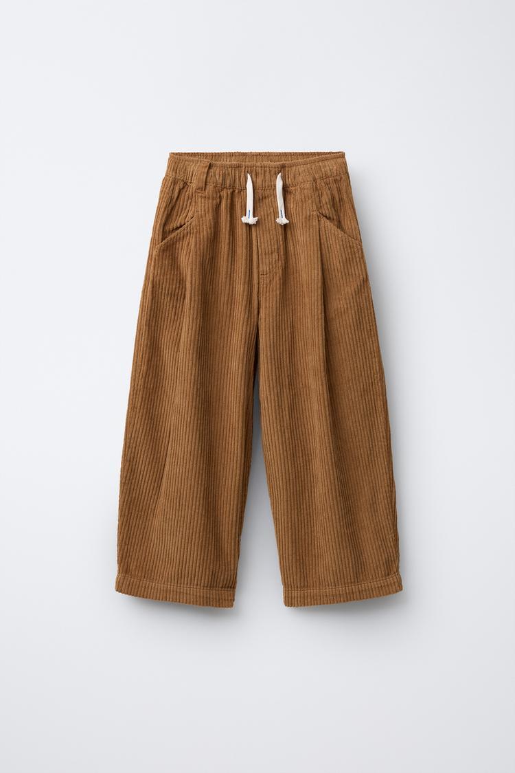 ZARA БРЮКИ BAGGY ИЗ ВЕЛЬВЕТА, СВЕТЛЫЙ ЖЕЛТО-КОРИЧНЕВЫЙ