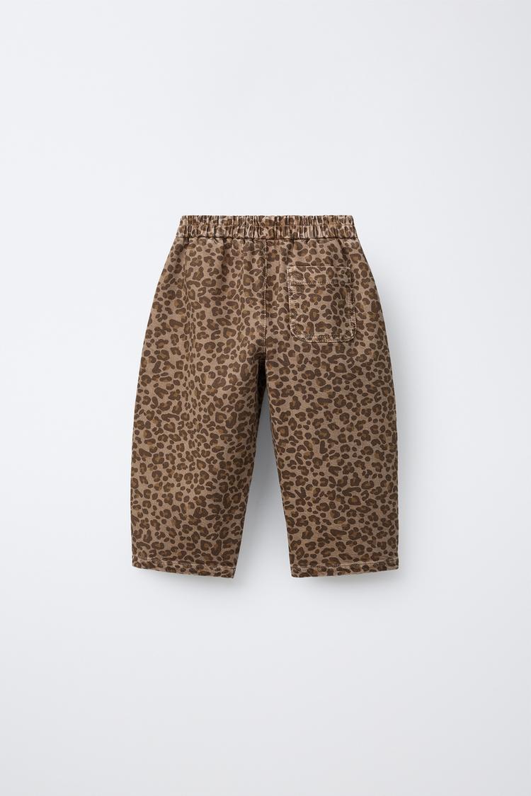 ZARA БРЮКИ BAGGY С АНИМАЛИСТИЧЕСКИМ ПРИНТОМ, КОРИЧНЕВЫЙ