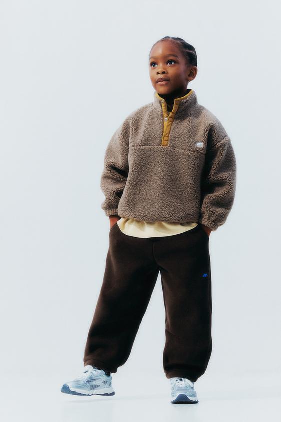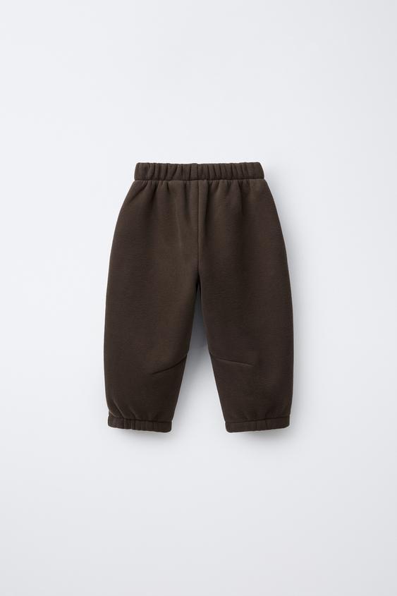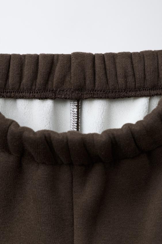 ZARA БРЮКИ BAGGY С ФЛИСОВОЙ ПОДКЛАДКОЙ И ЛОГОТИПОМ, КОРИЧНЕВЫЙ