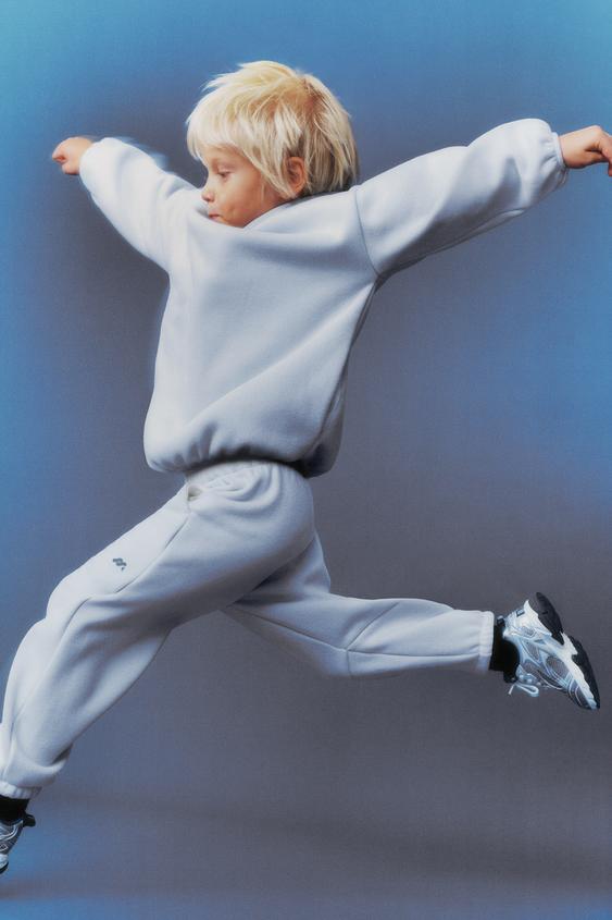 ZARA БРЮКИ BAGGY С ФЛИСОВОЙ ПОДКЛАДКОЙ И ЛОГОТИПОМ, СИНИЙ