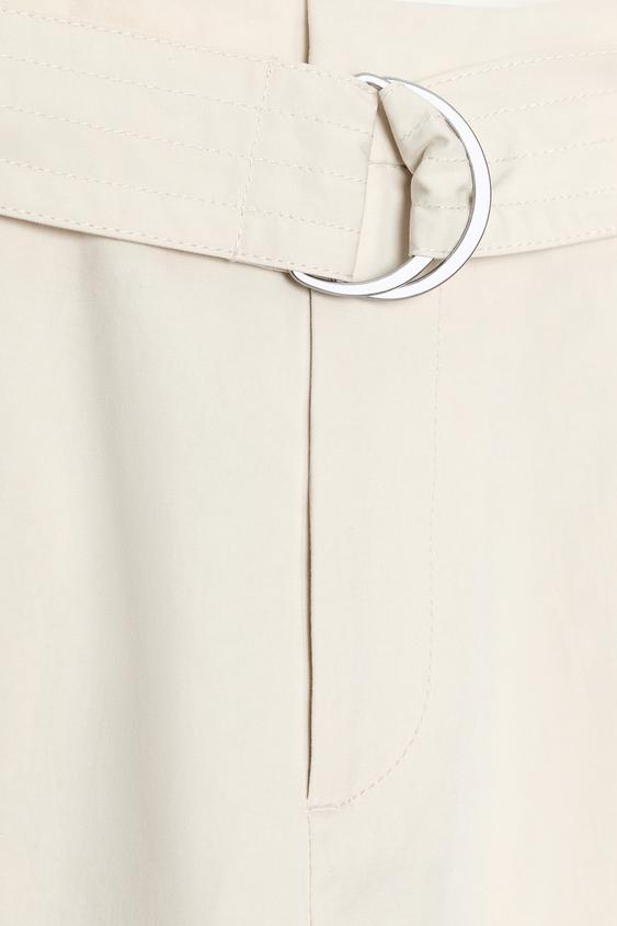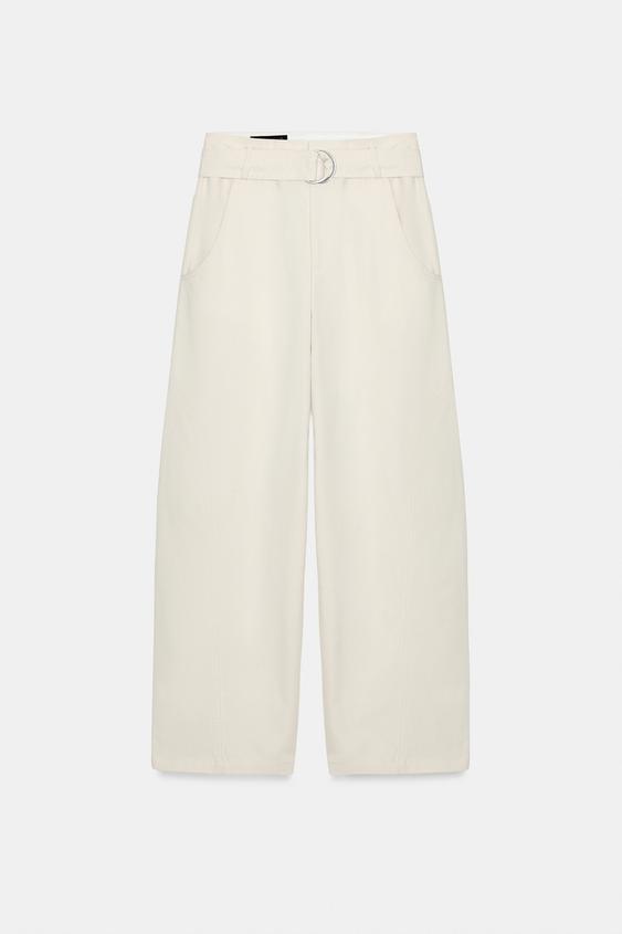 ZARA БРЮКИ BAGGY С ПОЯСОМ, ЭКРЮ