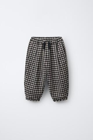 ZARA БРЮКИ BAGGY В КЛЕТКУ ВИШИ, ЧЕРНЫЙ/ЭКРЮ