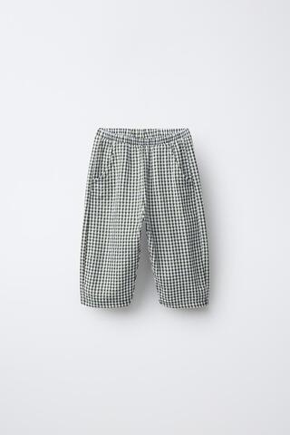 ZARA БРЮКИ BAGGY В КЛЕТКУ, ЗЕЛЕНЫЙ/ЭКРЮ