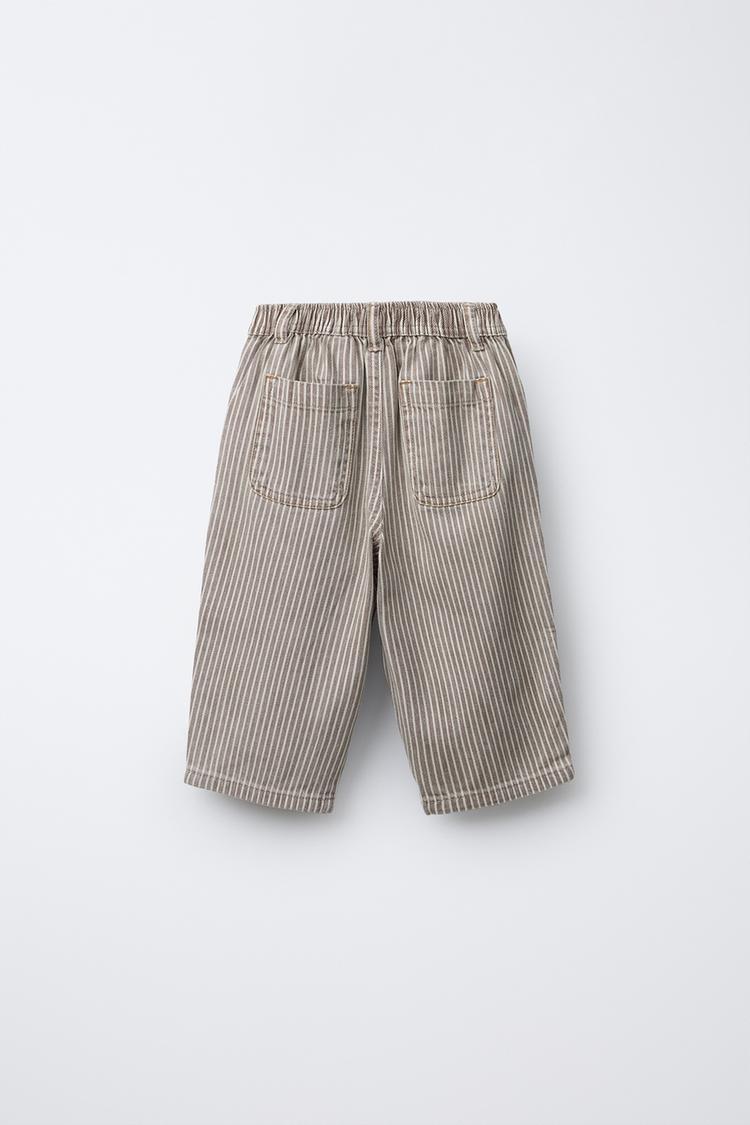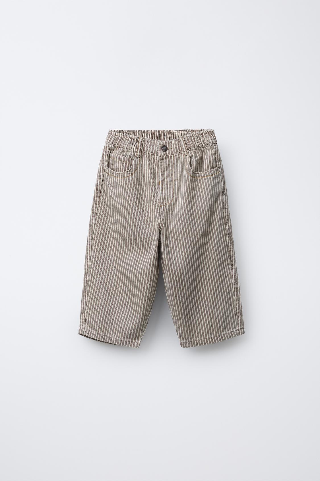 ZARA БРЮКИ BAGGY В ПОЛОСКУ ИЗ ТВИЛА, СЕРО-КОРИЧНЕВЫЙ