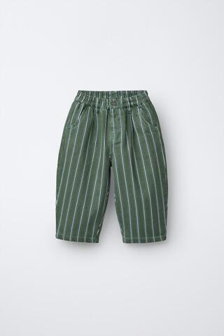 ZARA БРЮКИ BAGGY В ПОЛОСКУ, МЯГКИЙ ЗЕЛЕНЫЙ