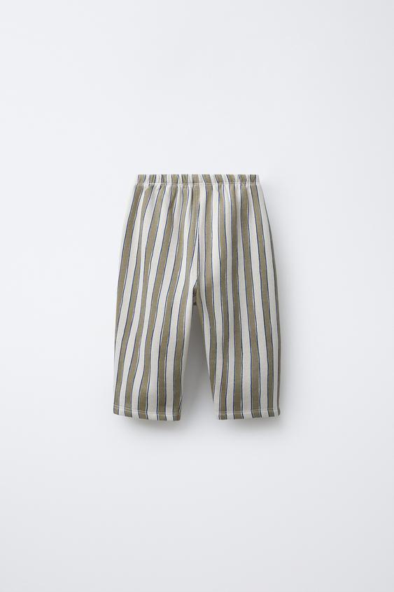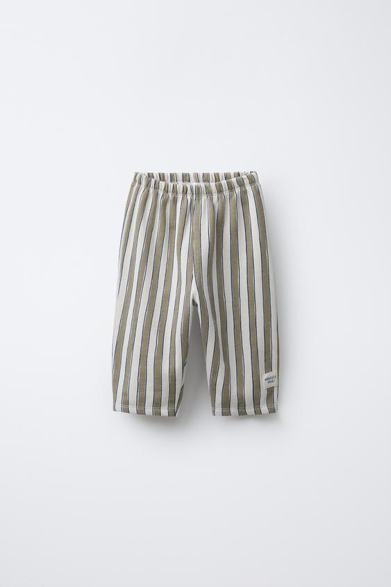 ZARA БРЮКИ BAGGY В ПОЛОСКУ С НАШИВКОЙ, БЕЖЕВЫЙ
