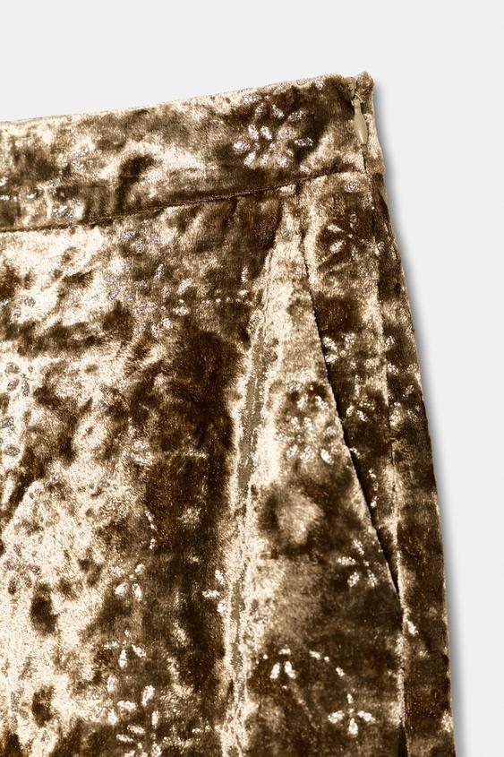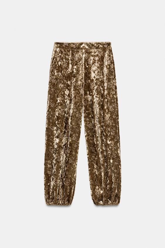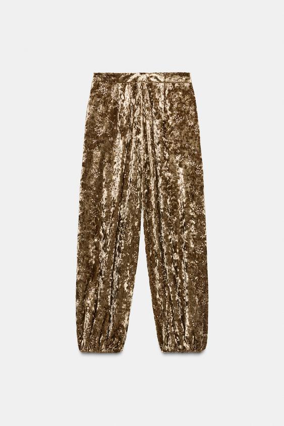 ZARA БРЮКИ-БАЛЛОНЫ ИЗ БАРХАТА С МЕТАЛЛИЗИРОВАННОЙ НИТЬЮ, ЗОЛОТИСТЫЙ