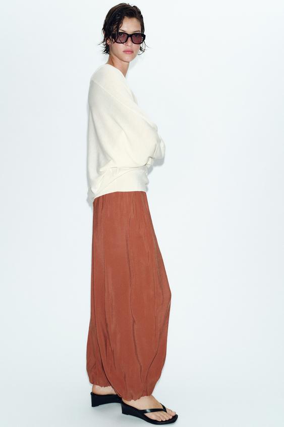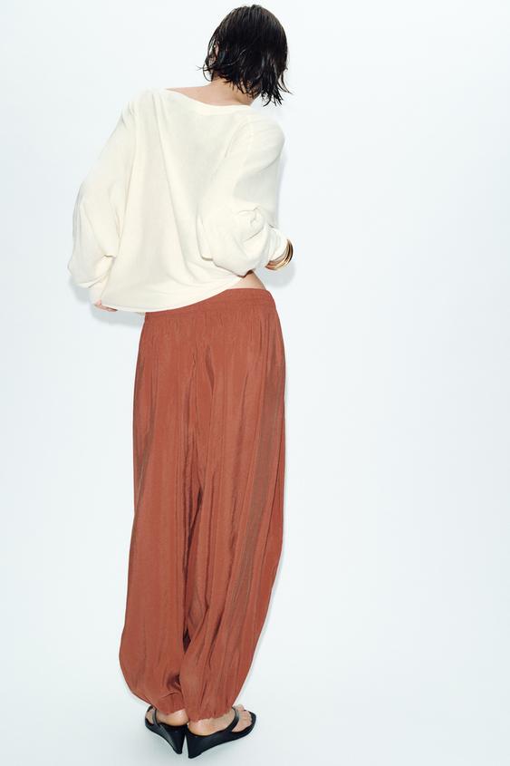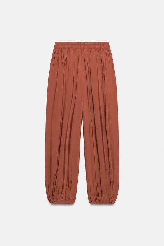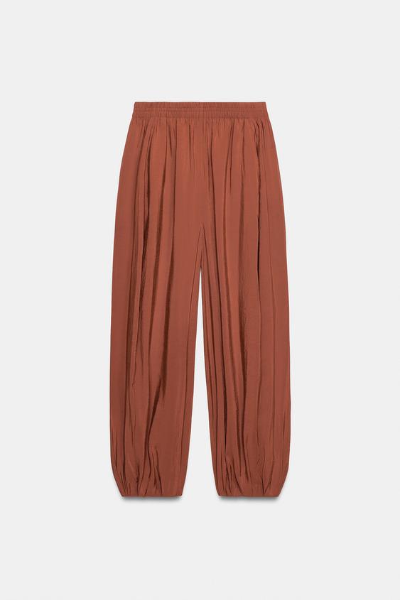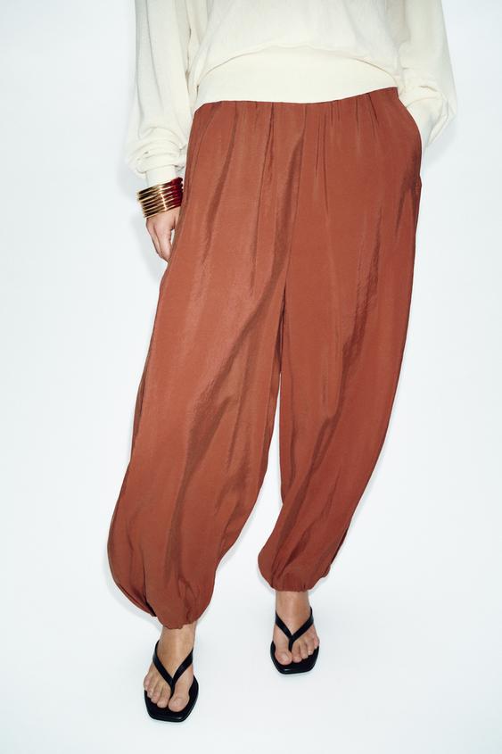 ZARA БРЮКИ-БАЛЛОНЫ С ЭЛАСТИЧНЫМ ПОЯСОМ. ЧЕРЕПИЧНЫЙ