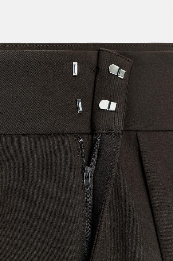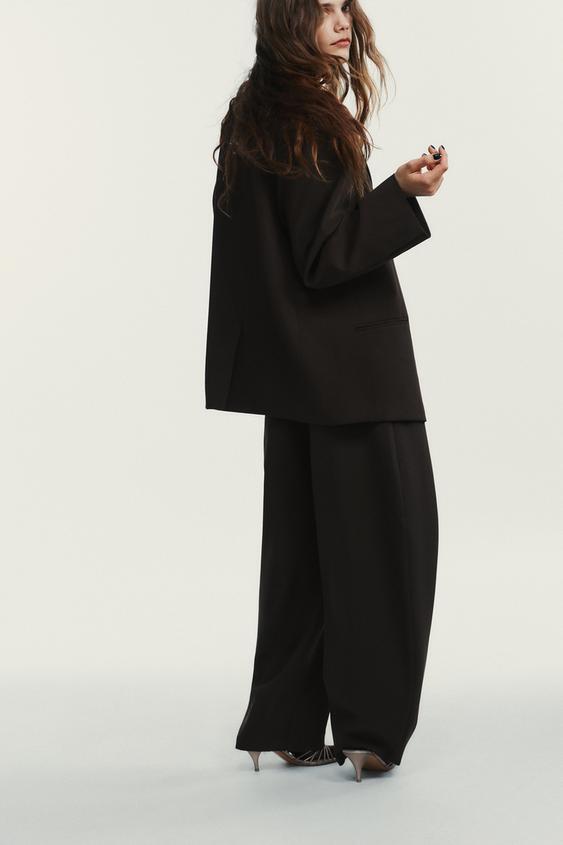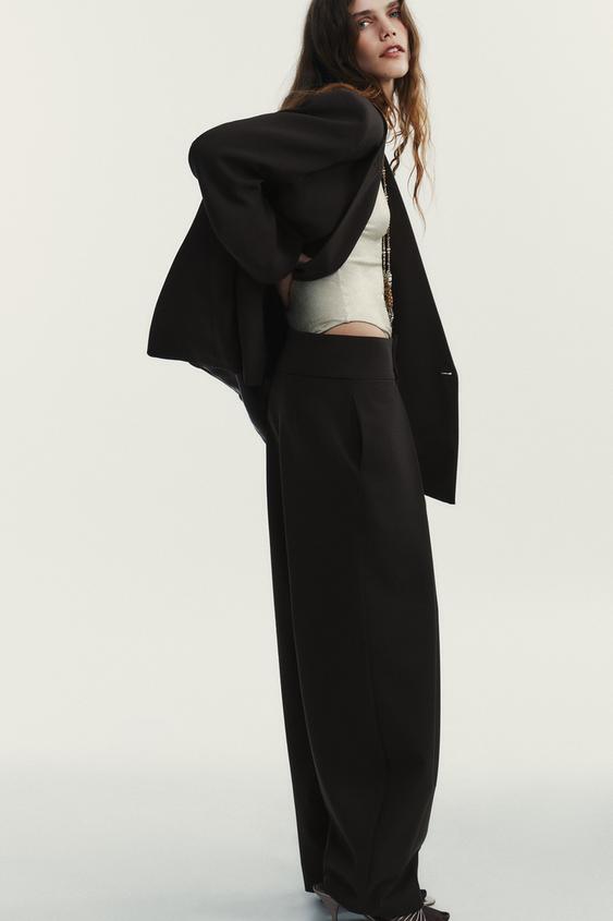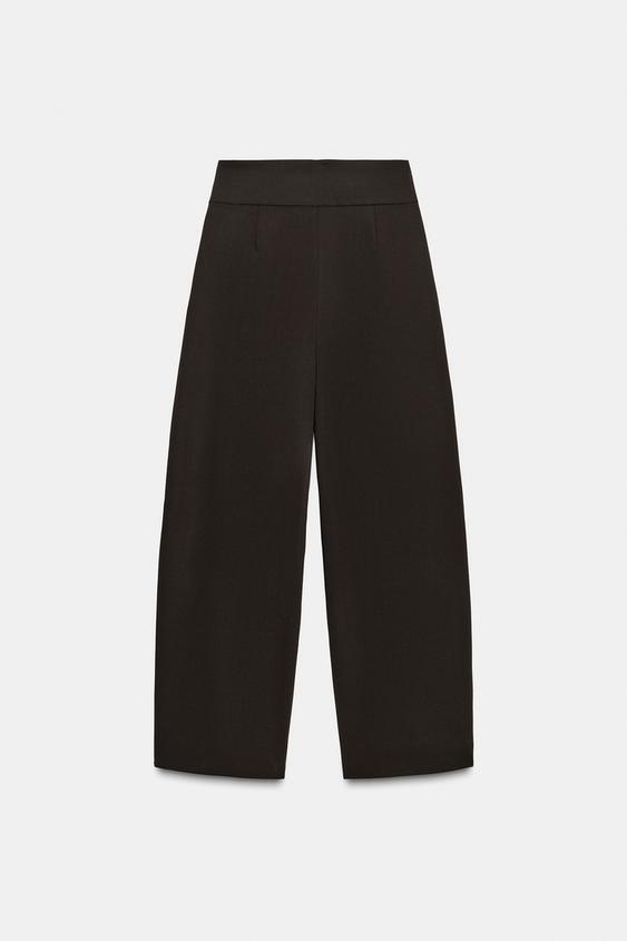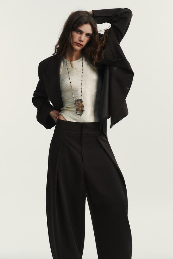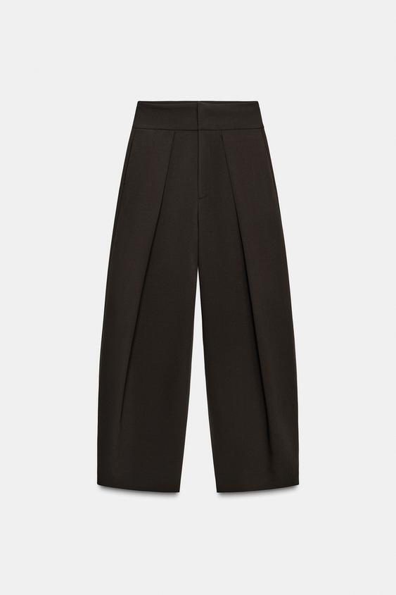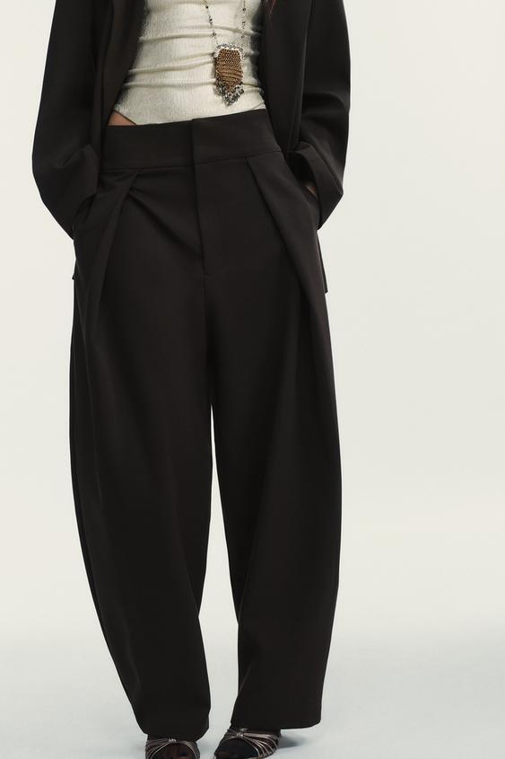 ZARA БРЮКИ-БАЛЛОНЫ СО СКЛАДКАМИ, ТЕМНО-БАКЛАЖАНОВЫЙ