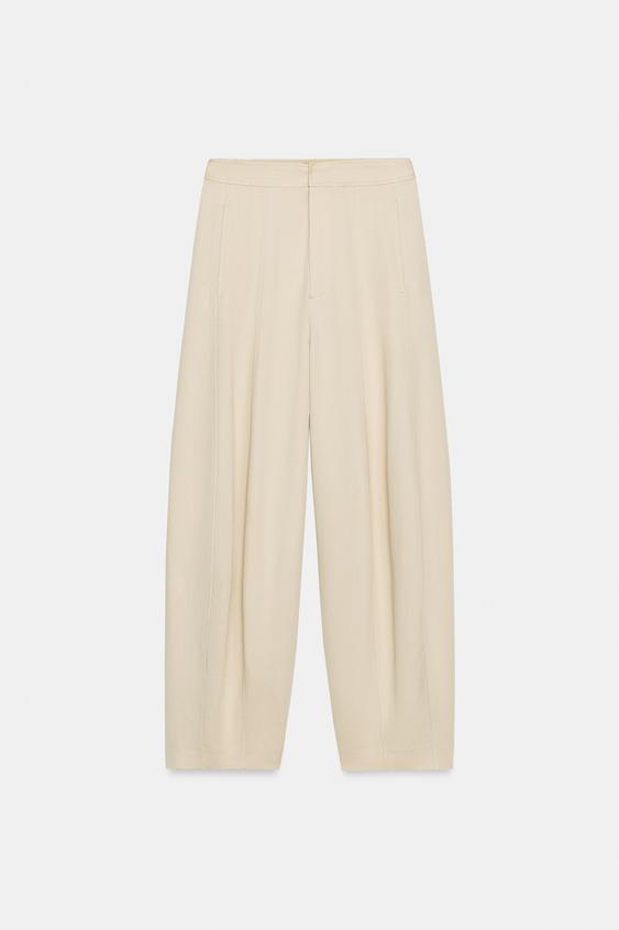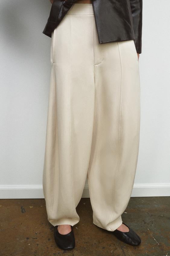 ZARA БРЮКИ-БАЛЛОНЫ ZW COLLECTION, КАМЕННО-СЕРЫЙ