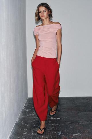 ZARA БРЮКИ-БАЛЛОНЫ ZW COLLECTION, КРАСНЫЙ