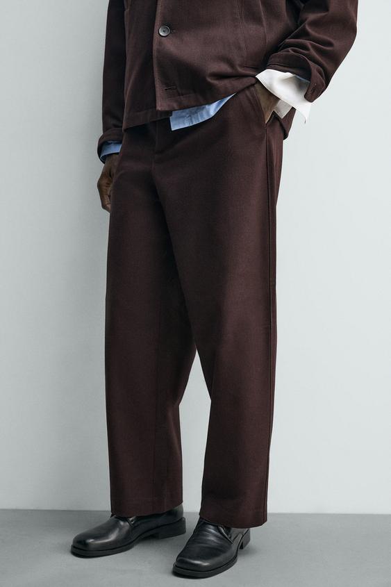 ZARA БРЮКИ BALLOON FIT ИЗ РЕЛЬЕФНОЙ ТКАНИ, ГРАНАТОВЫЙ