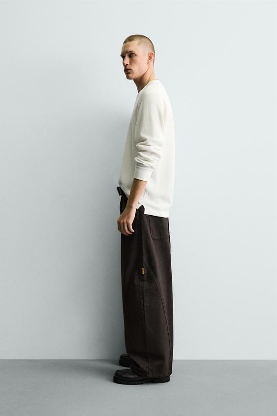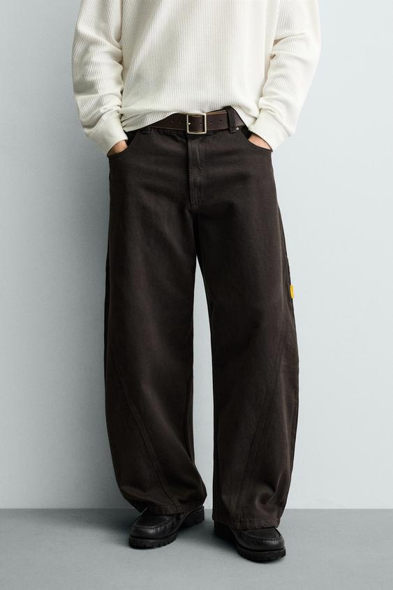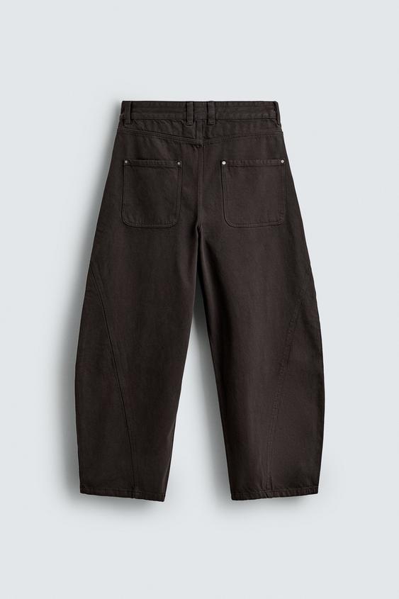 ZARA БРЮКИ BALLOON FIT С ДЕКОРАТИВНЫМИ ШВАМИ, КОРИЧНЕВЫЙ