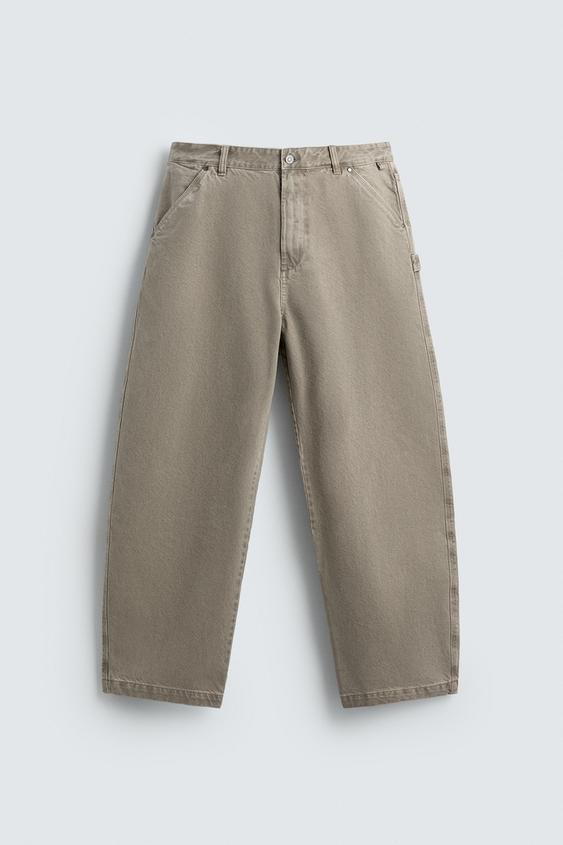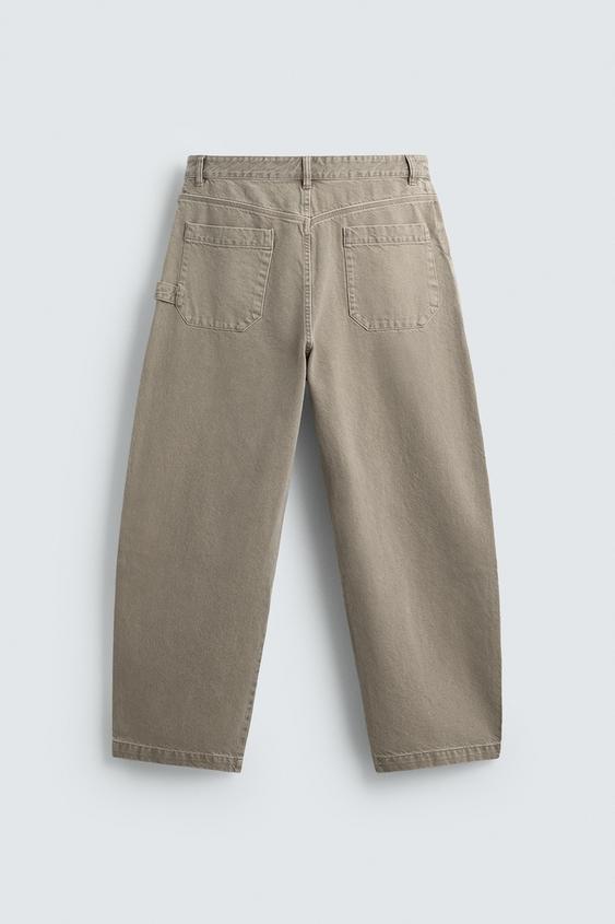 ZARA БРЮКИ BALLOON FIT С ЭФФЕКТОМ ПОТЕРТОСТИ, СВЕТЛО-ПЕСОЧНЫЙ