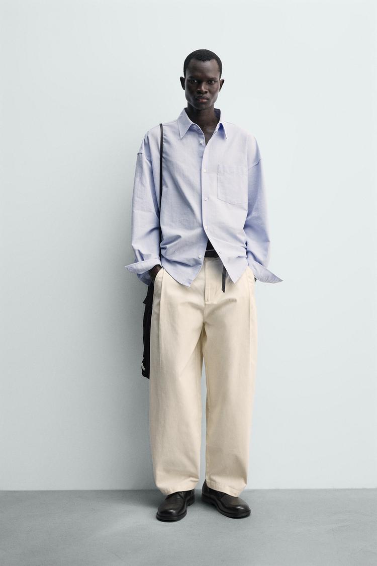 ZARA БРЮКИ BALLOON FIT С ЗАЩИПАМИ, ЭКРЮ