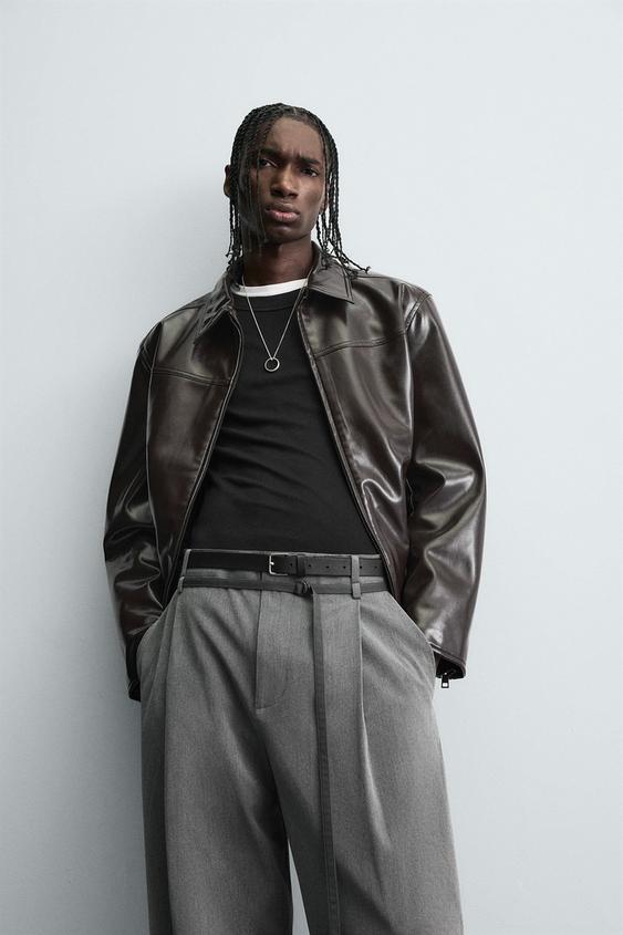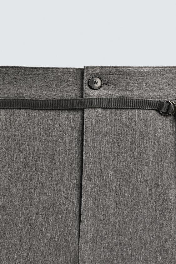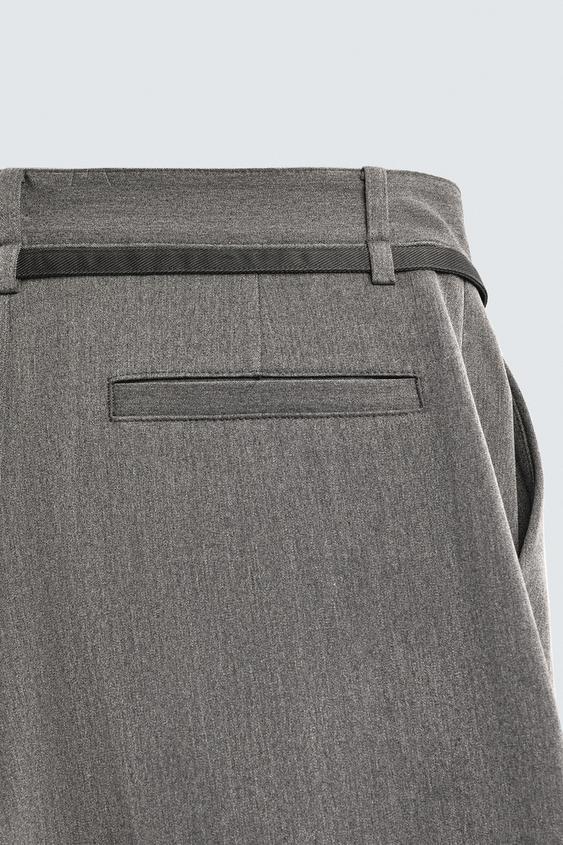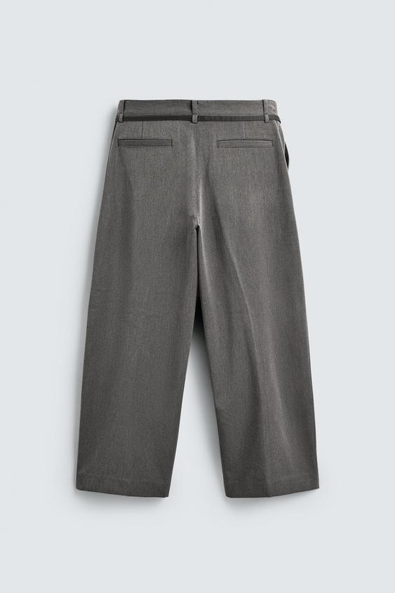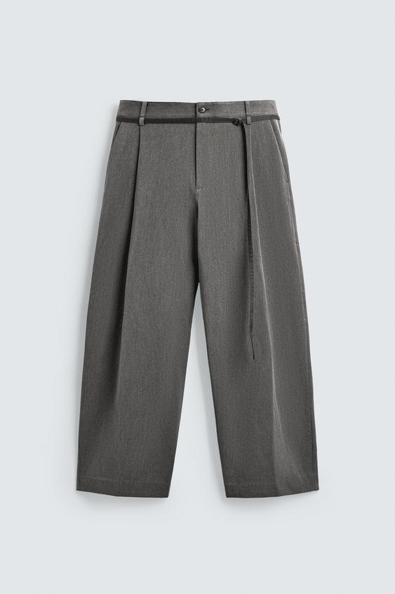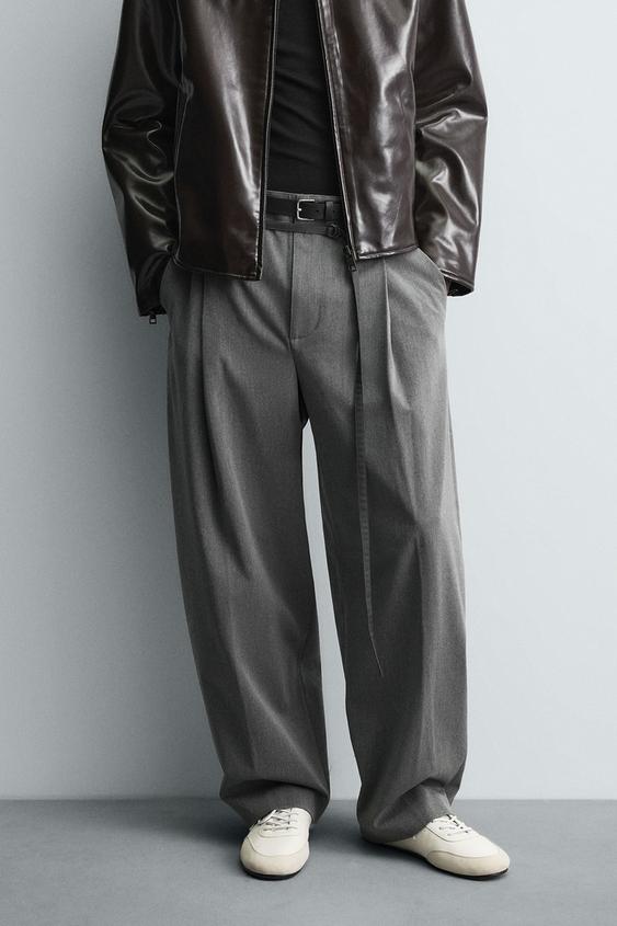 ZARA БРЮКИ BALLOON FIT С ЗАЩИПАМИ И ПОЯСОМ, СЕРЫЙ