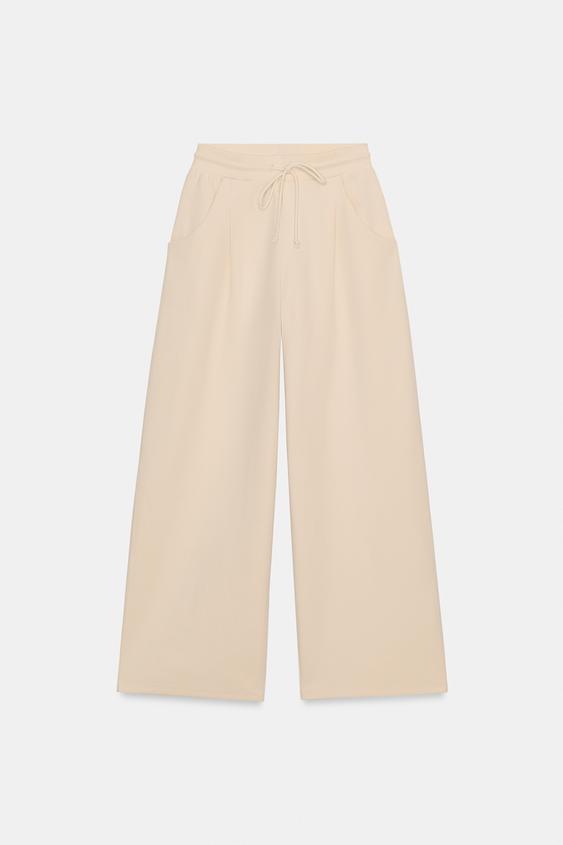 ZARA БРЮКИ BALLOON ИЗ ТРИКОТАЖА ИНТЕРЛОК, ЦВЕТ СЛИВОЧНОГО МАСЛА