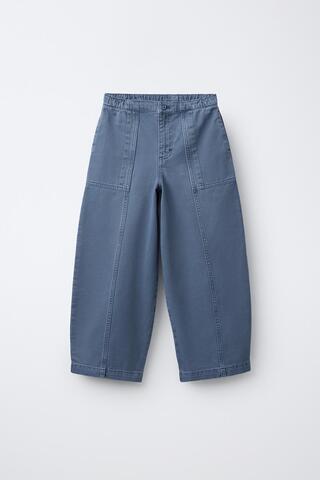 ZARA БРЮКИ BALLOON С ДЕКОРАТИВНЫМ ШВОМ, СИНИЙ