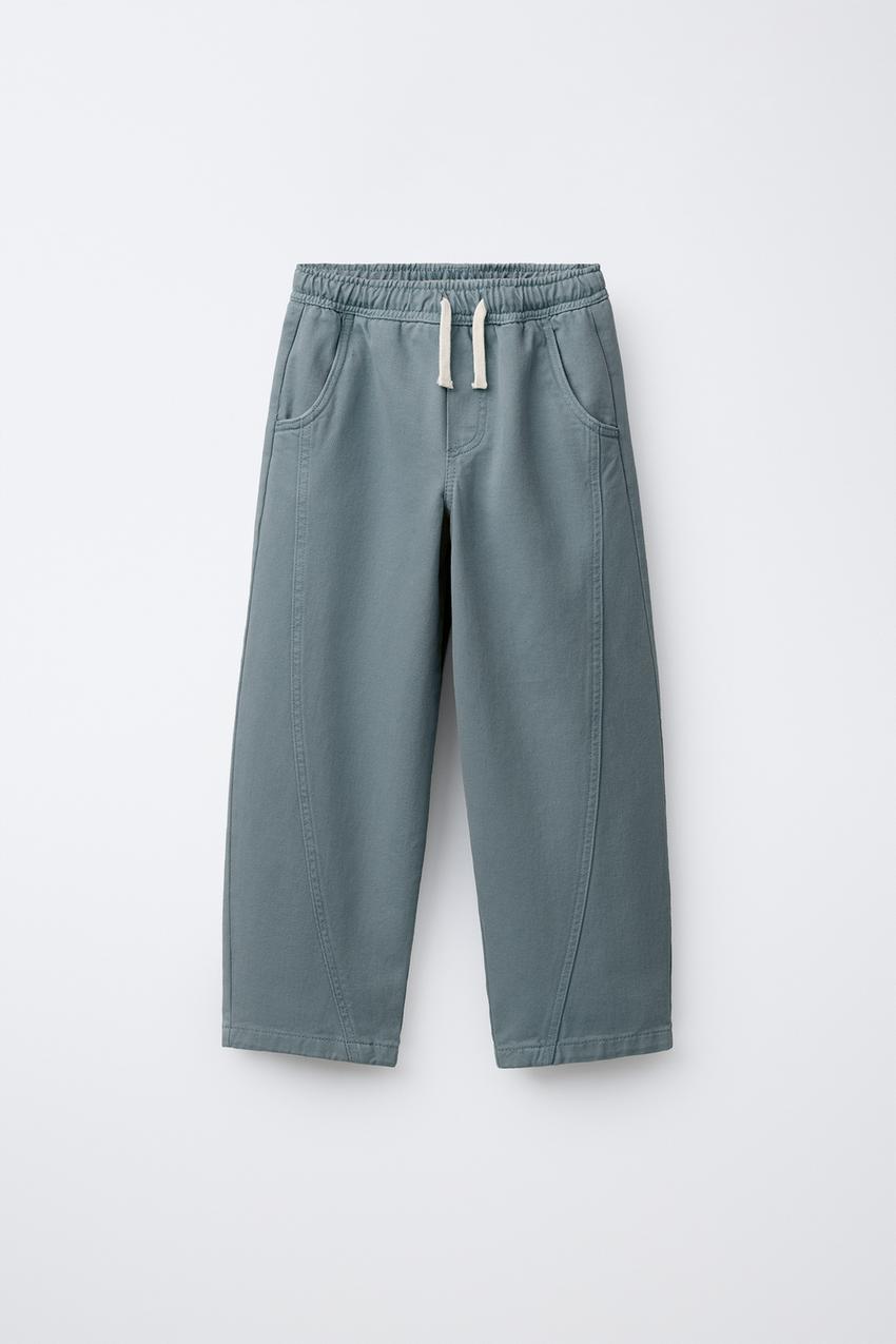 ZARA БРЮКИ BALLOON С ДЕКОРАТИВНЫМИ ШВАМИ, СИНИЙ