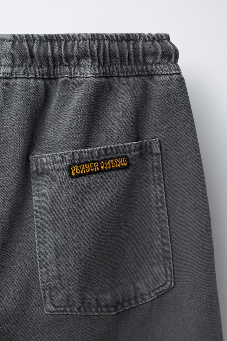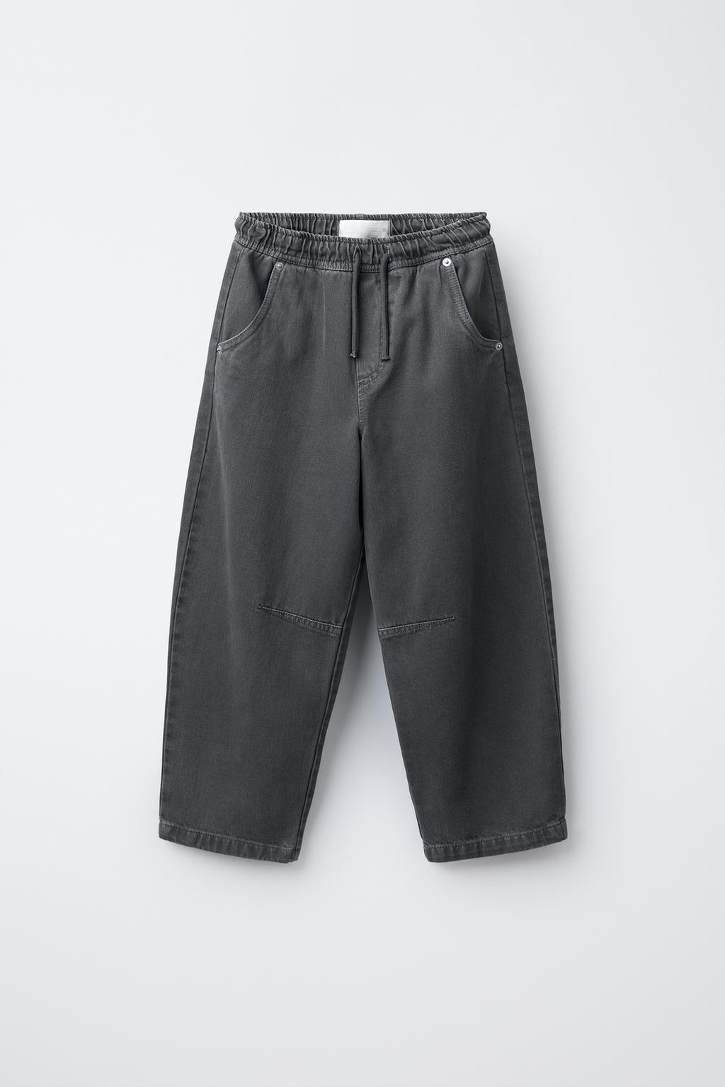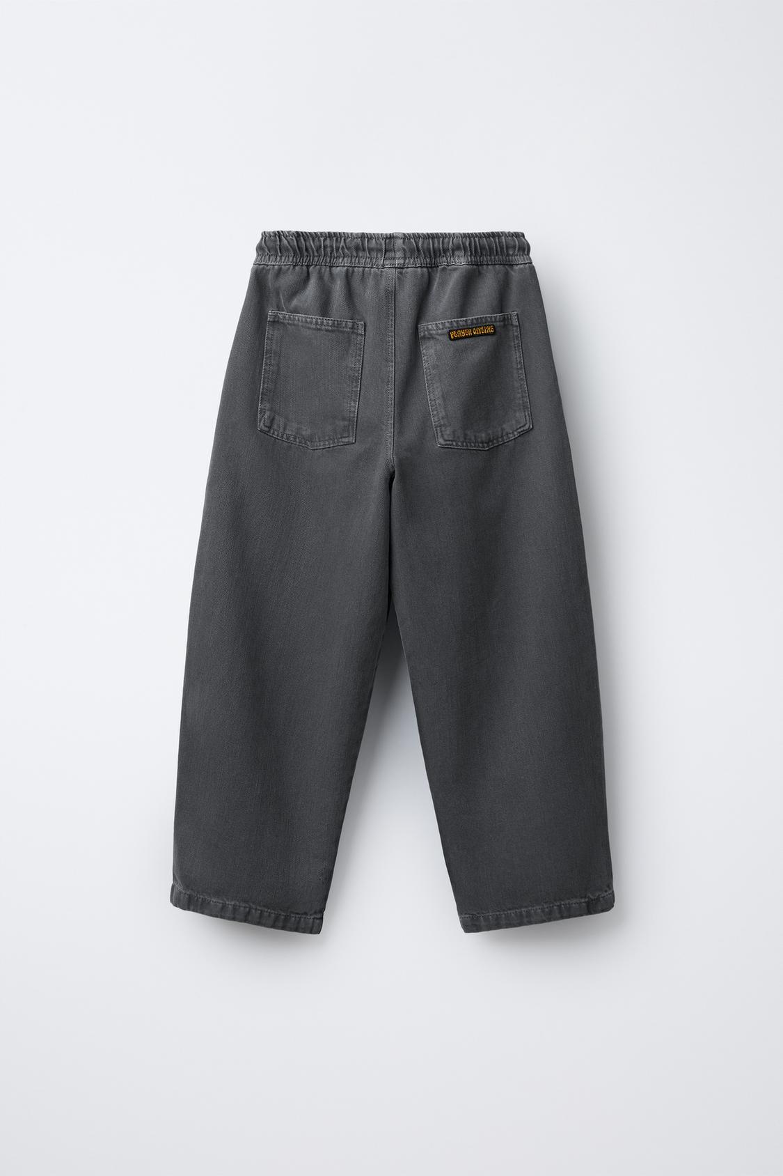 ZARA БРЮКИ BALLOON С НАШИВКОЙ, СЕРО-СИНИЙ