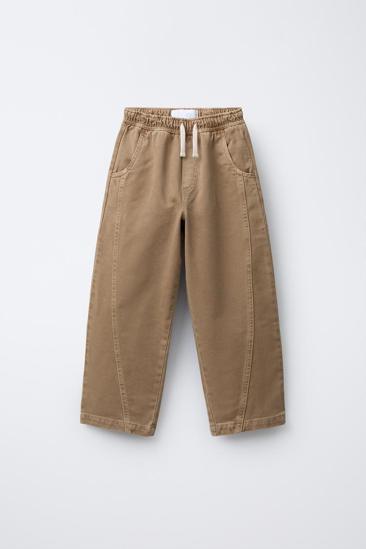 ZARA БРЮКИ BALLOON С ВЫРЕЗАМИ, СВЕТЛЫЙ ЖЕЛТО-КОРИЧНЕВЫЙ